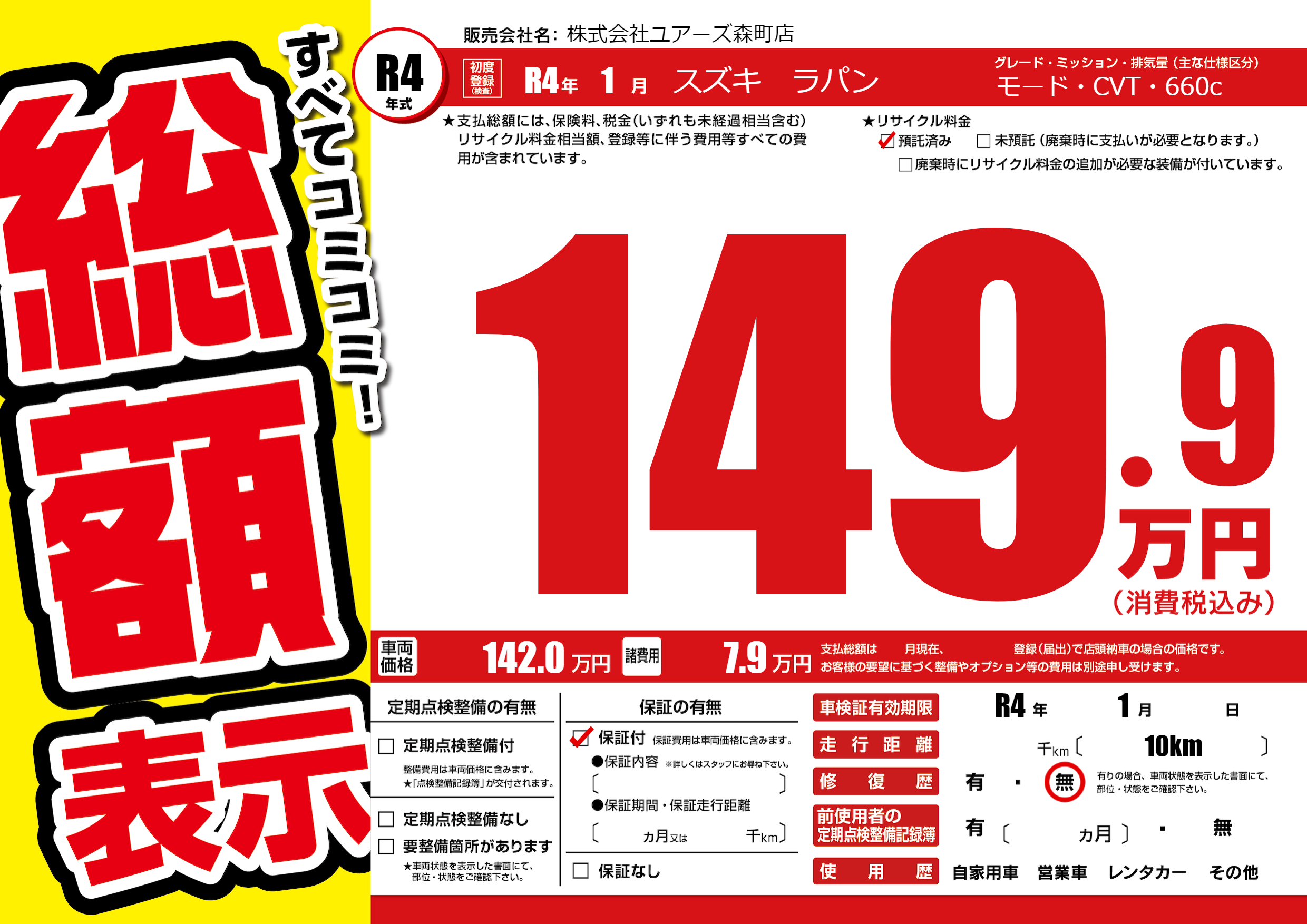 なし | 車検制限 | R4年1月---月 |