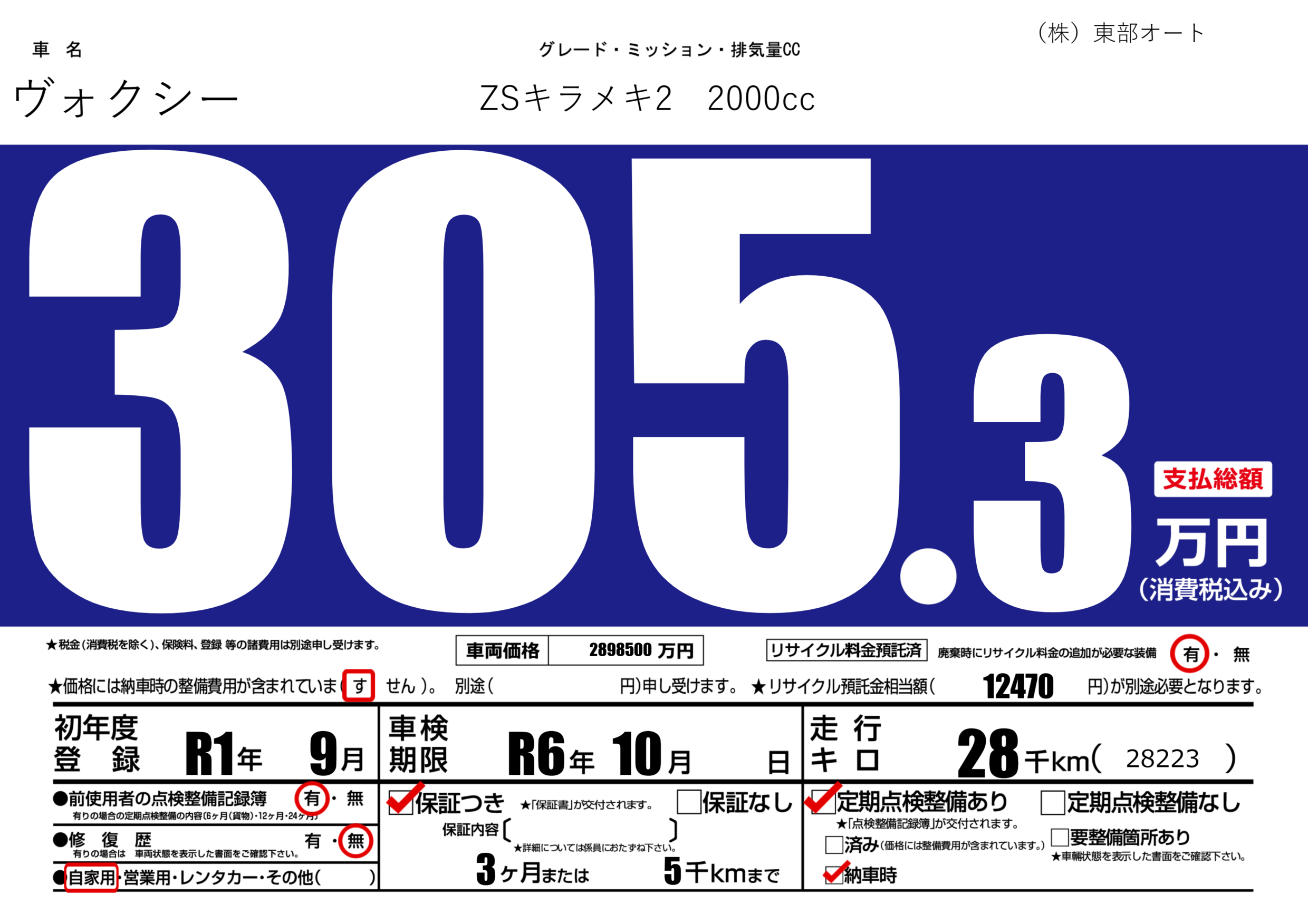 | 車検制限 | R6年 10月 - 日 | ||