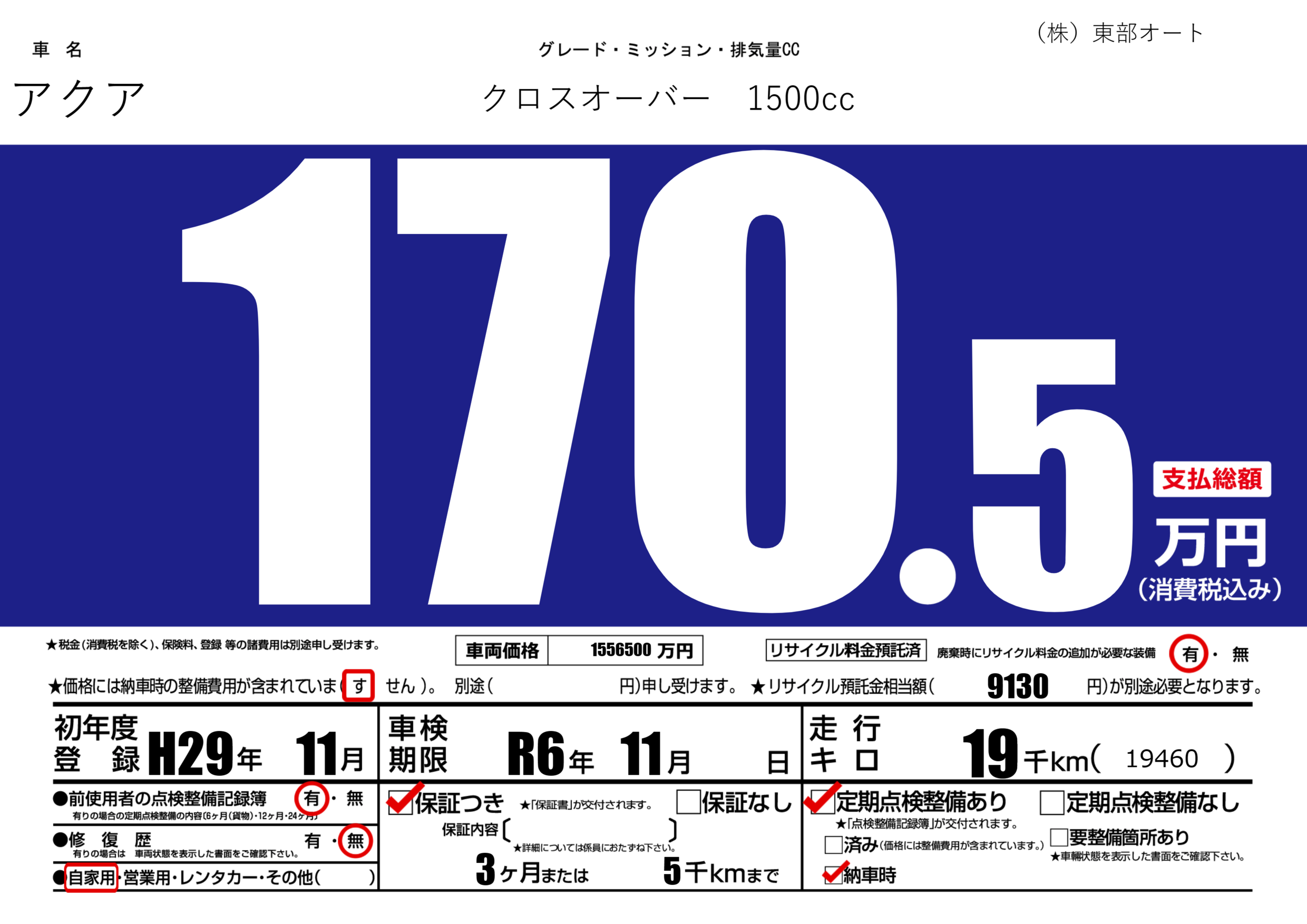 保証付き 保証内容(---) 3ヶ月または(5)千kmまで |