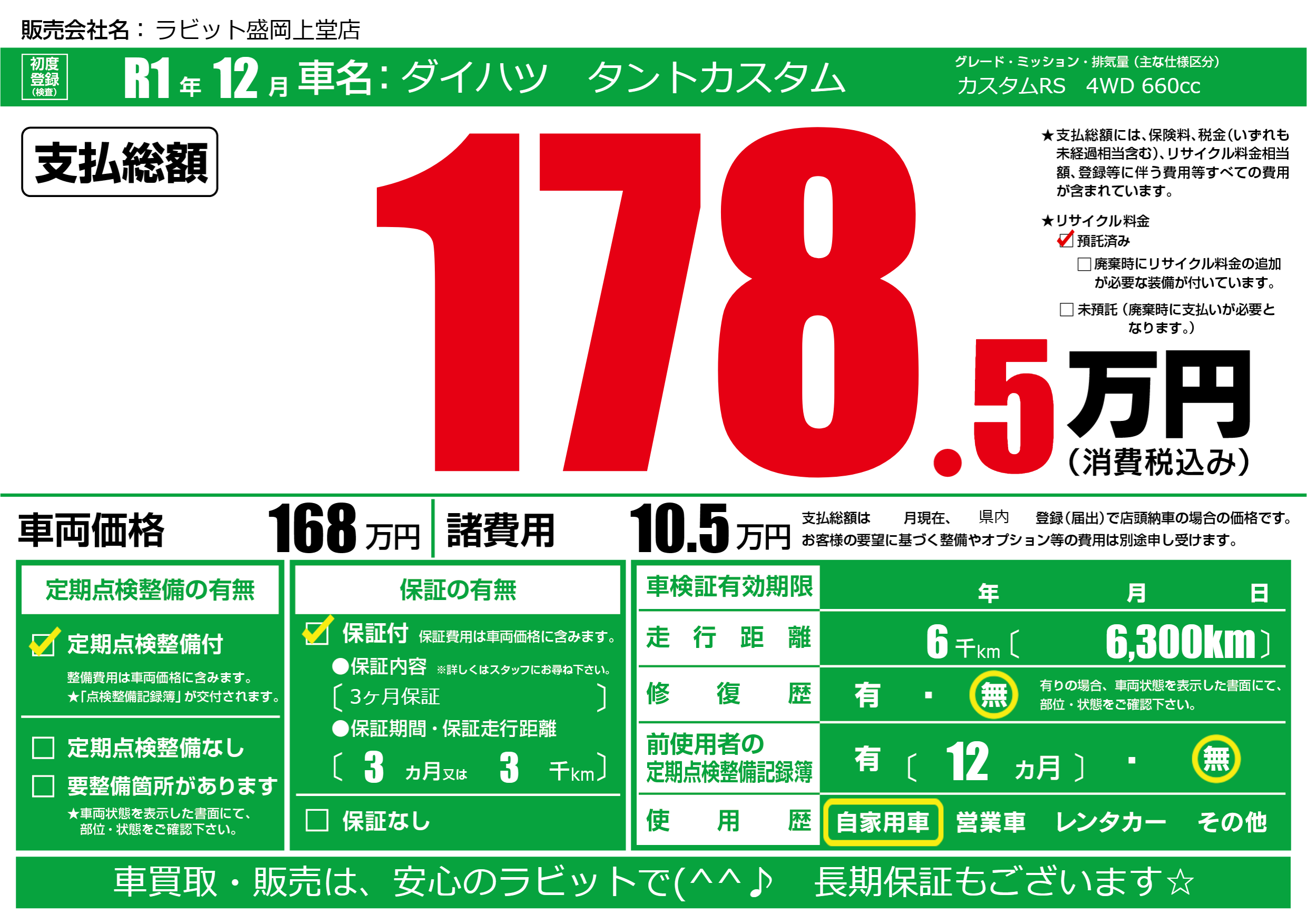 保証付き 保証内容(3ヶ月保証) 3ヶ月または(3)千kmまで |
