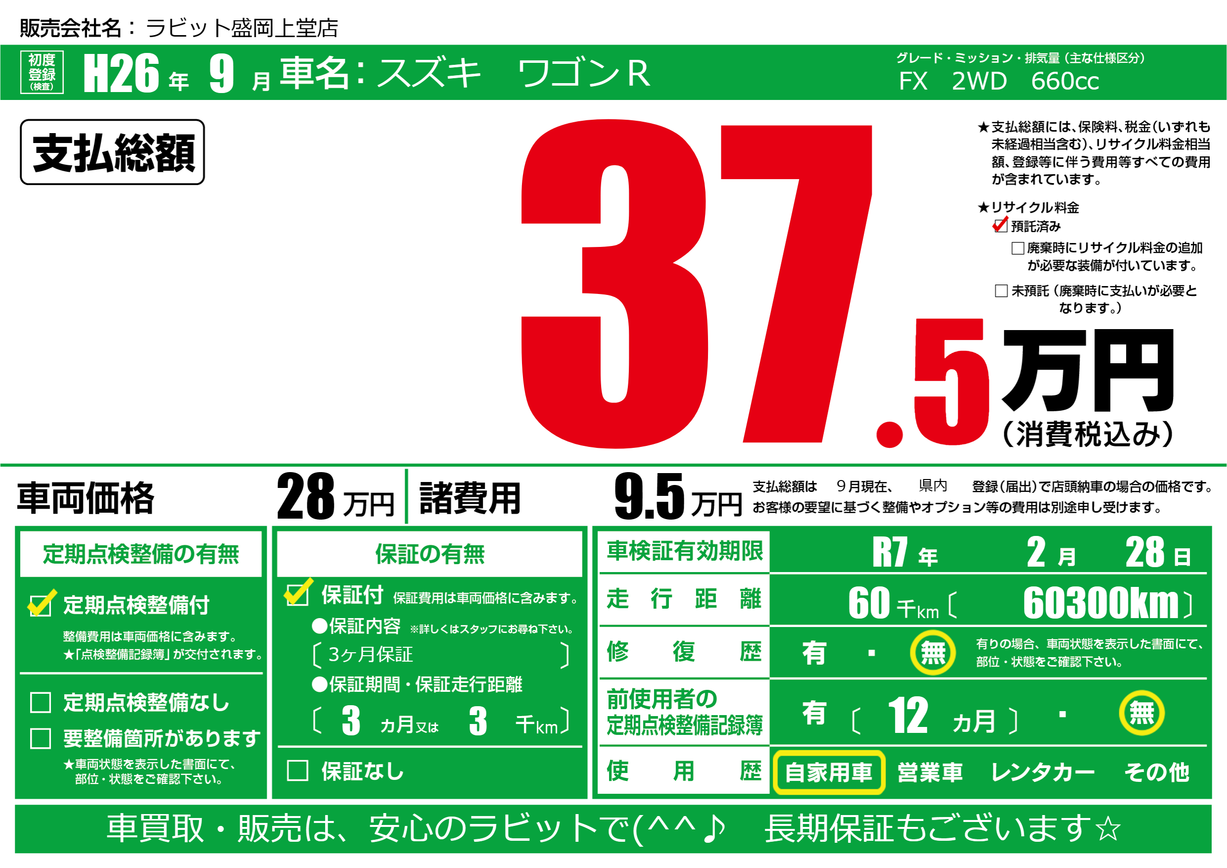 なし | 車検制限 | R7年2月28月 |
