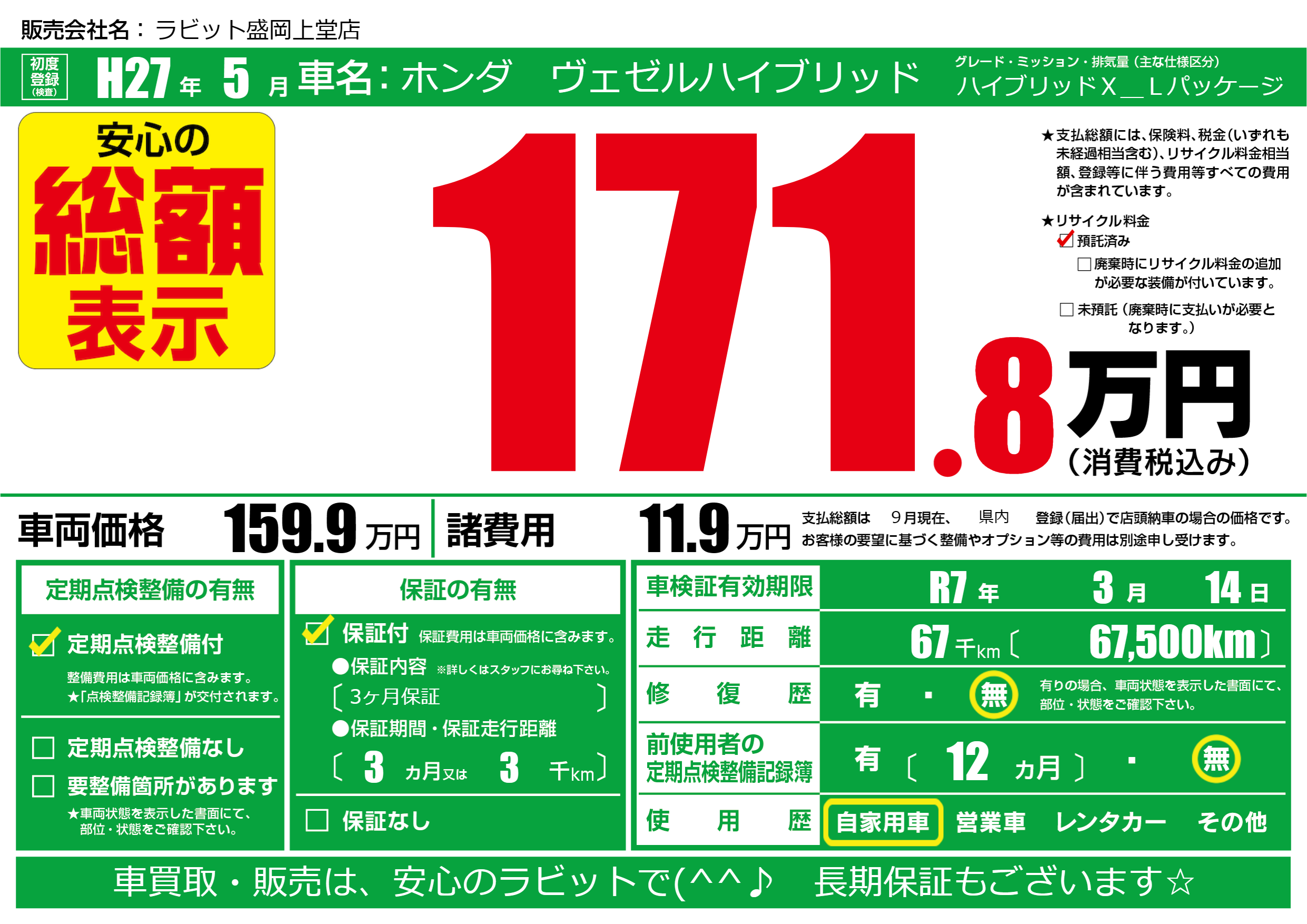 | 車検制限 | R7年 3月 14日 | ||