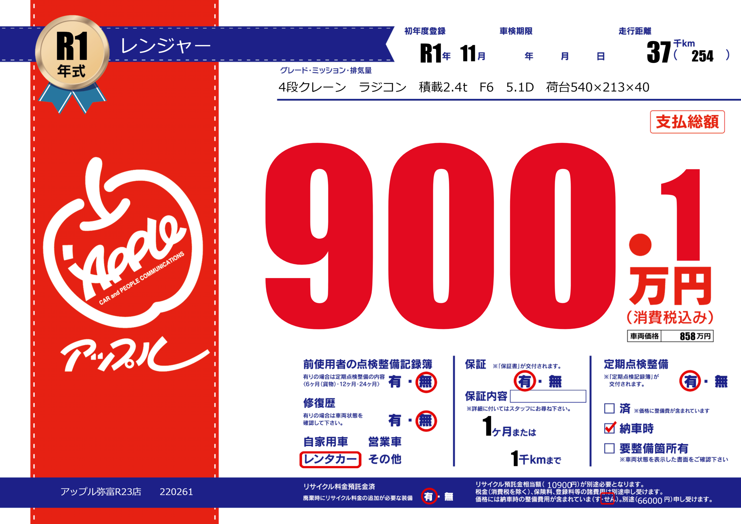 | 走行キロ | 3.7万km | 初年度登録 | R1年11月 |