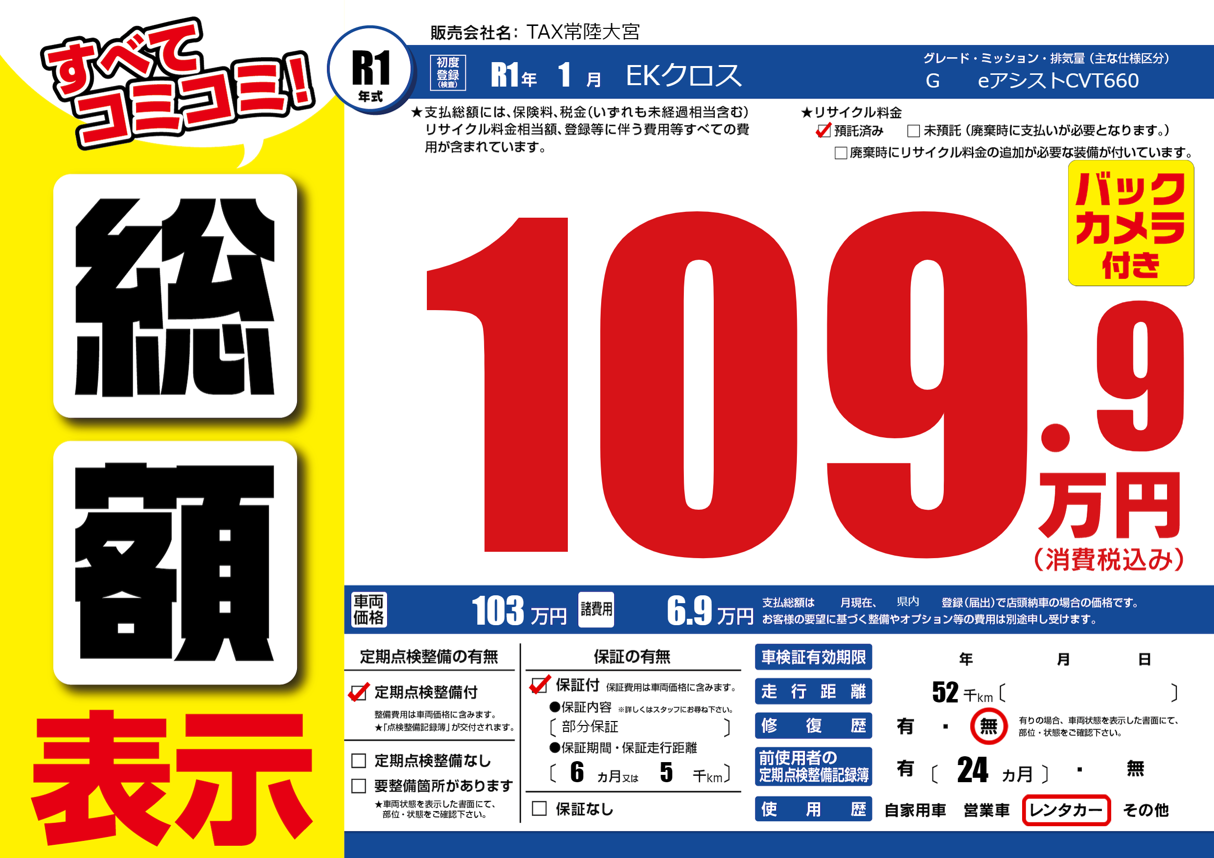 | 車名 | EKクロス | グレード ミッション 排気量 |