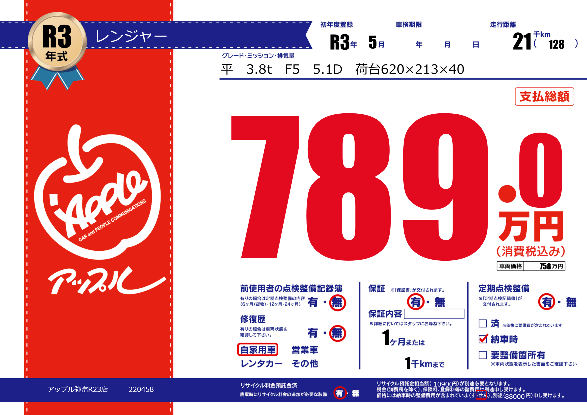 | 車名 | レンジャー | グレード ミッション 排気量 |