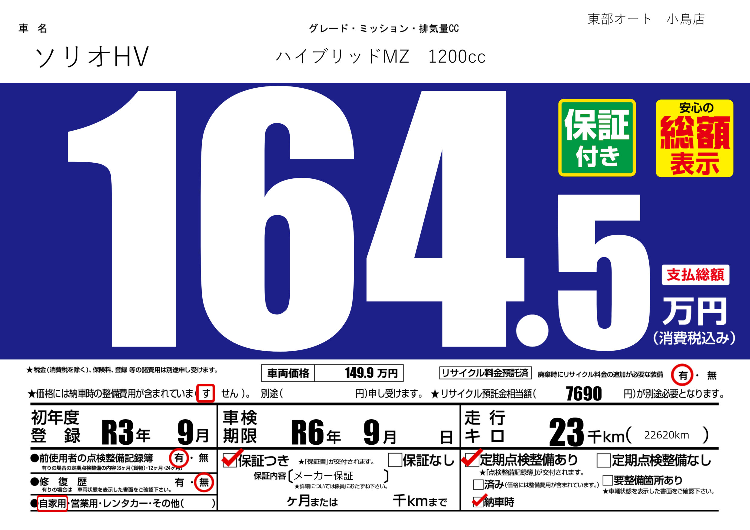 | 車名 | ソリオHV | グレード ミッション 排気量 |