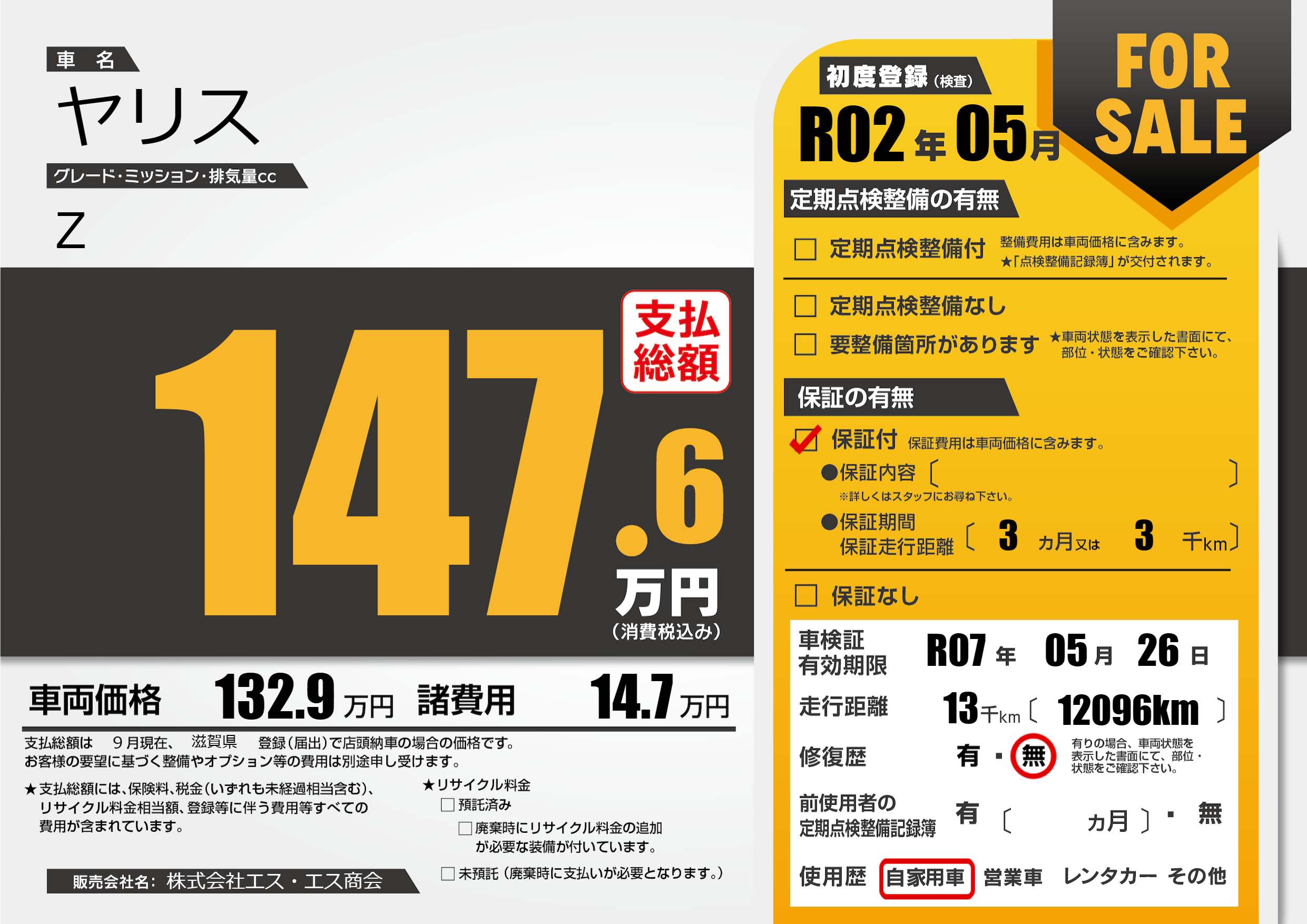 | 車名 | ヤリス | グレード ミッション 排気量 |