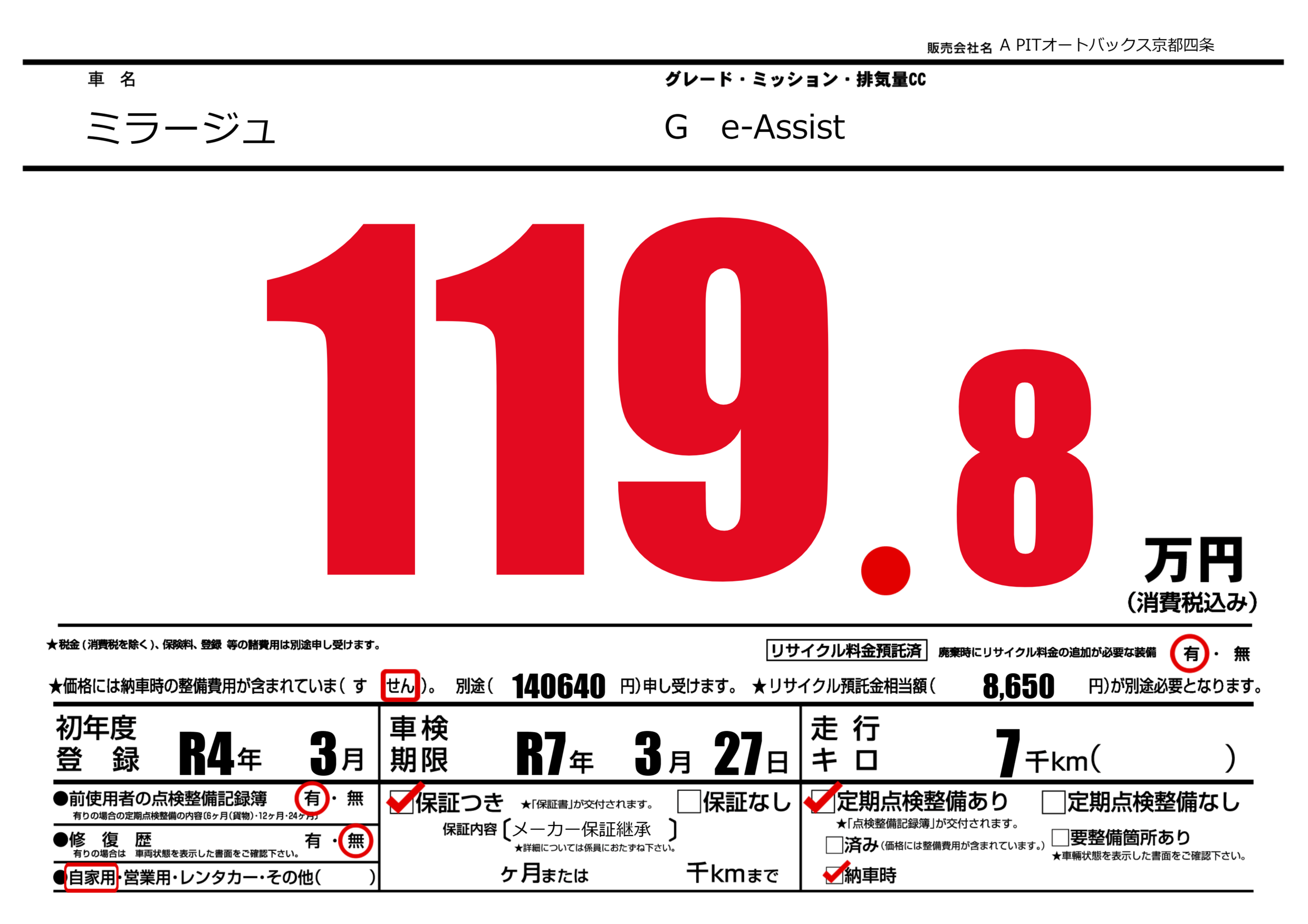 | 走行キロ | 0.7万km | 初年度登録 | R4年3月 |