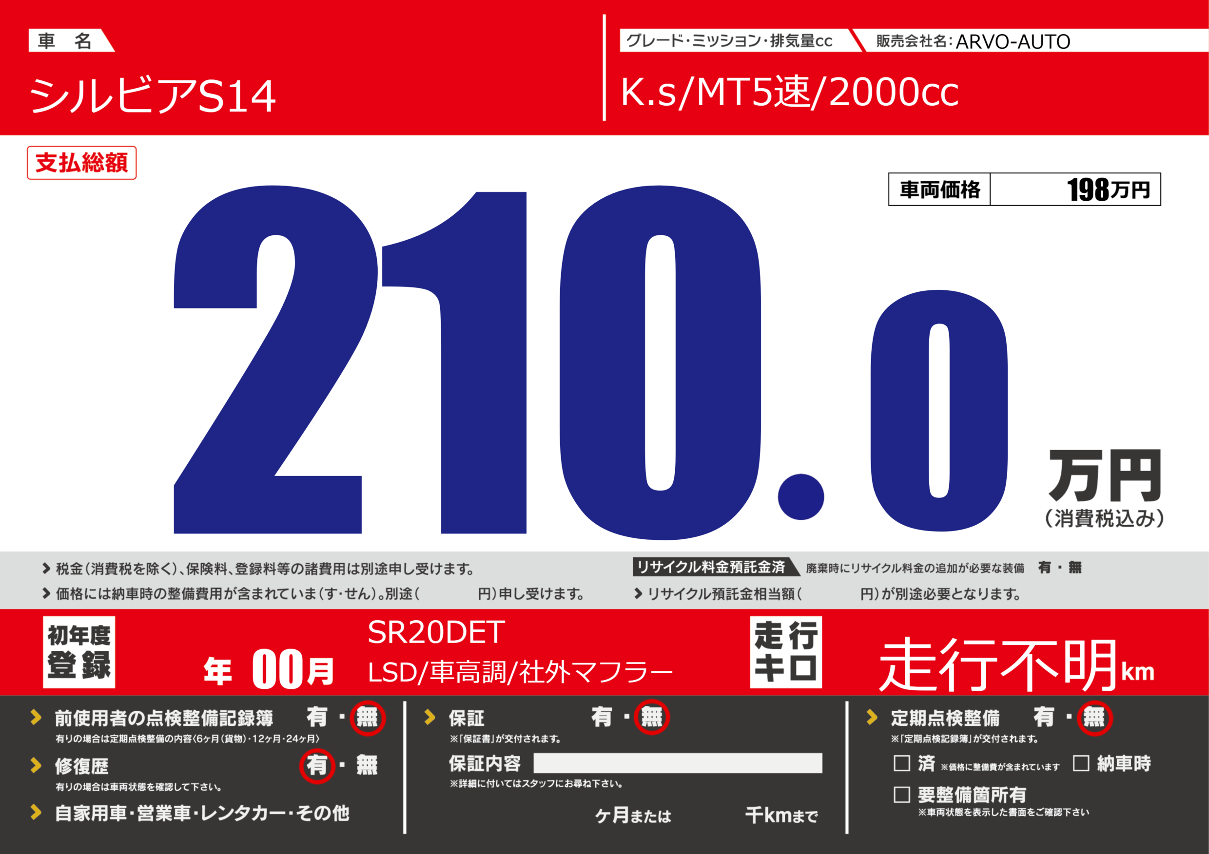 | 車名 | シルビアS14 | グレード ミッション 排気量 |
