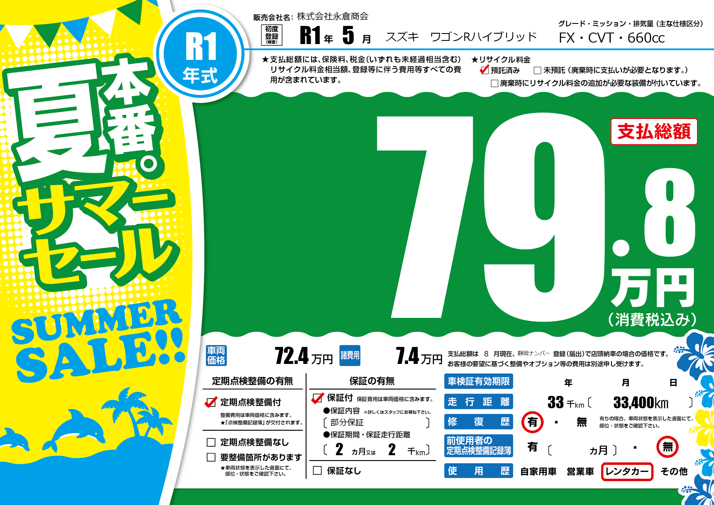 | 走行キロ | 3.3万km | 初年度登録 | R1年5月 |