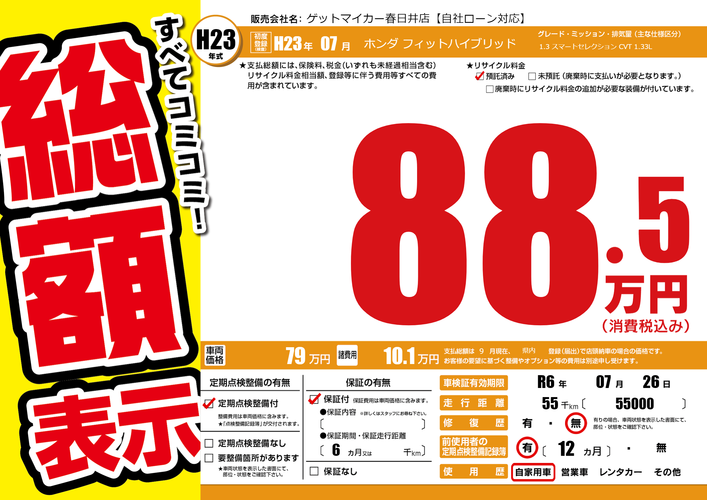 | 車検制限 | R6年 07月 26日 | ||