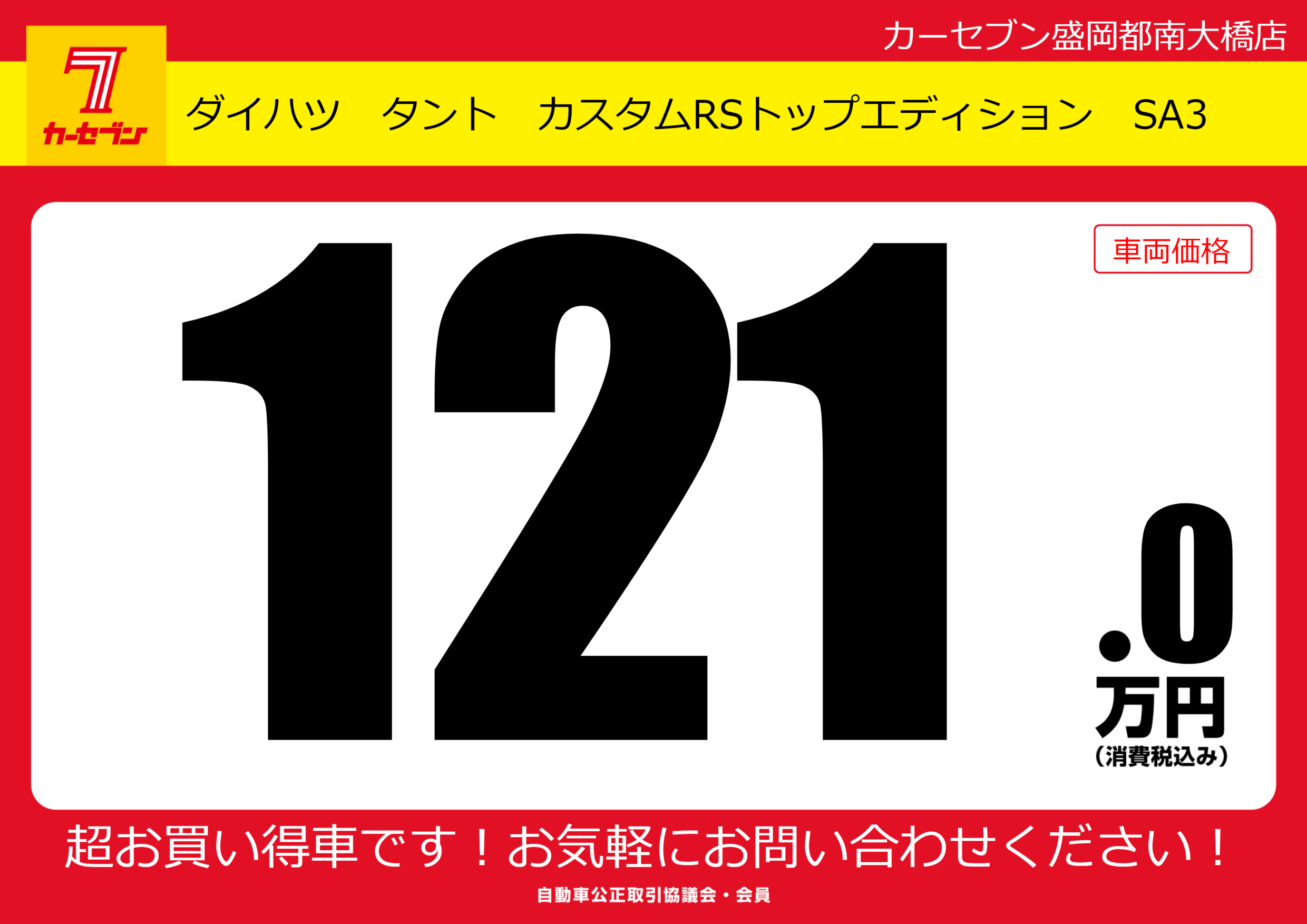 | 車名 | ダイハツ タント カスタムRSトップエディション SA3 | グレード ミッション 排気量 |