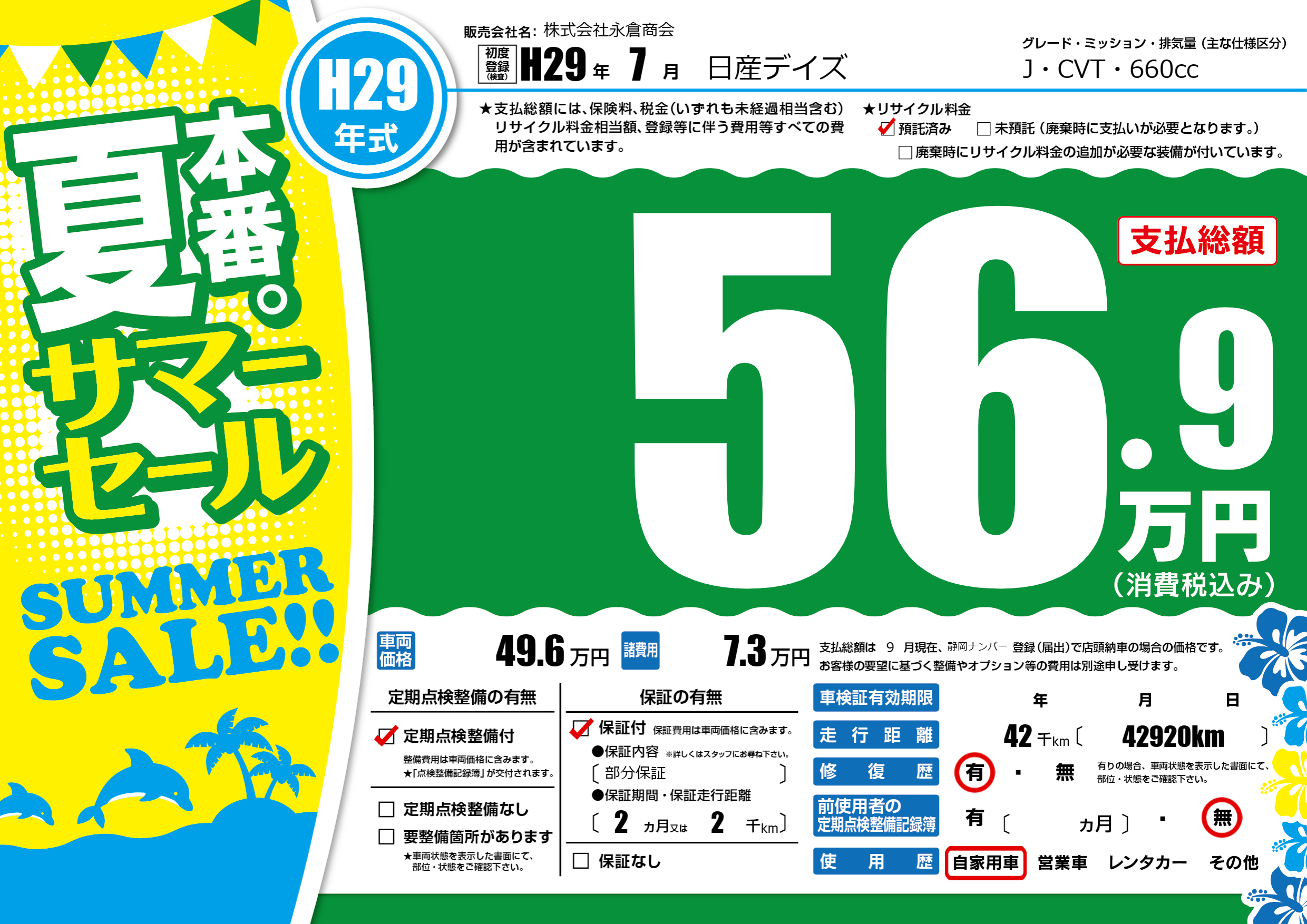 | 初年度登録 | H29年7月 | ||