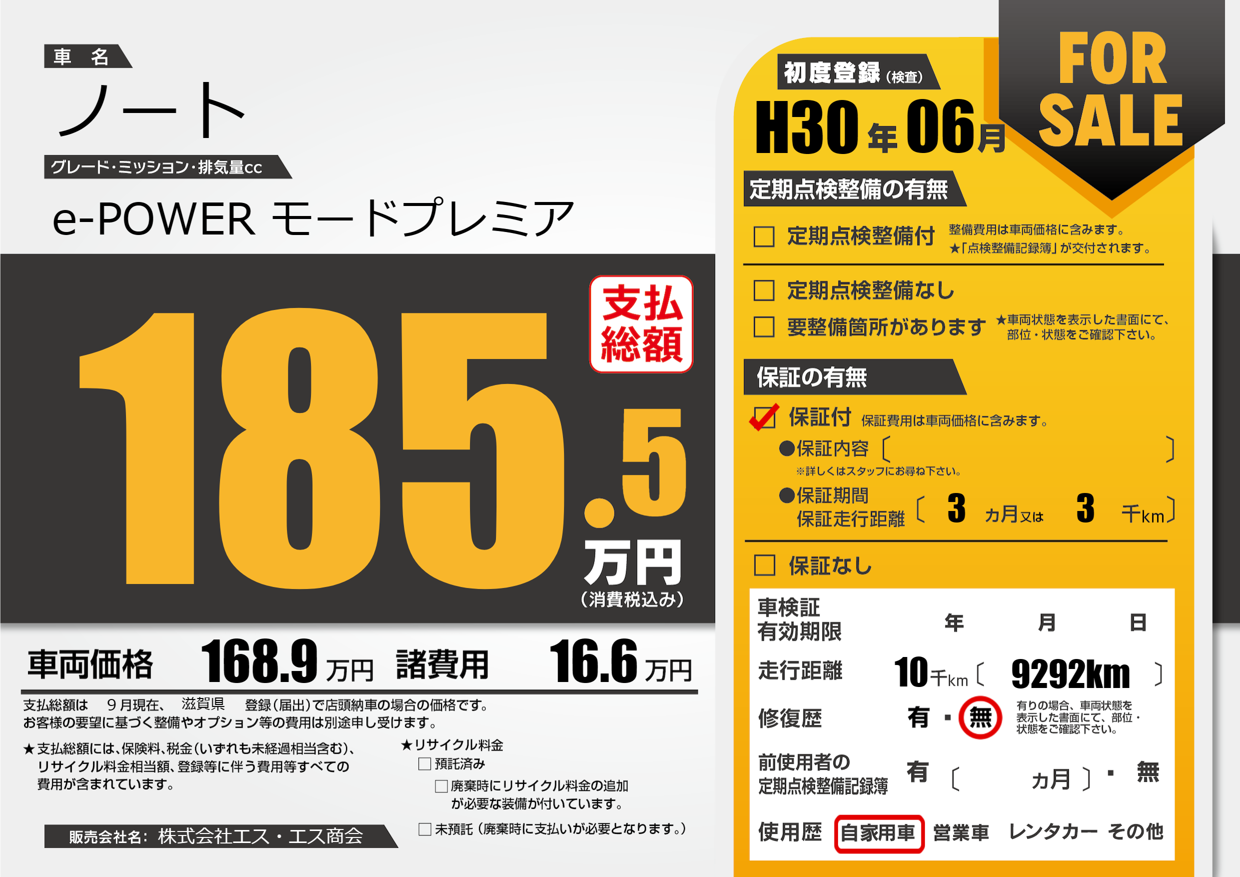 保証付き 保証内容(---) 3ヶ月または(3)千kmまで |