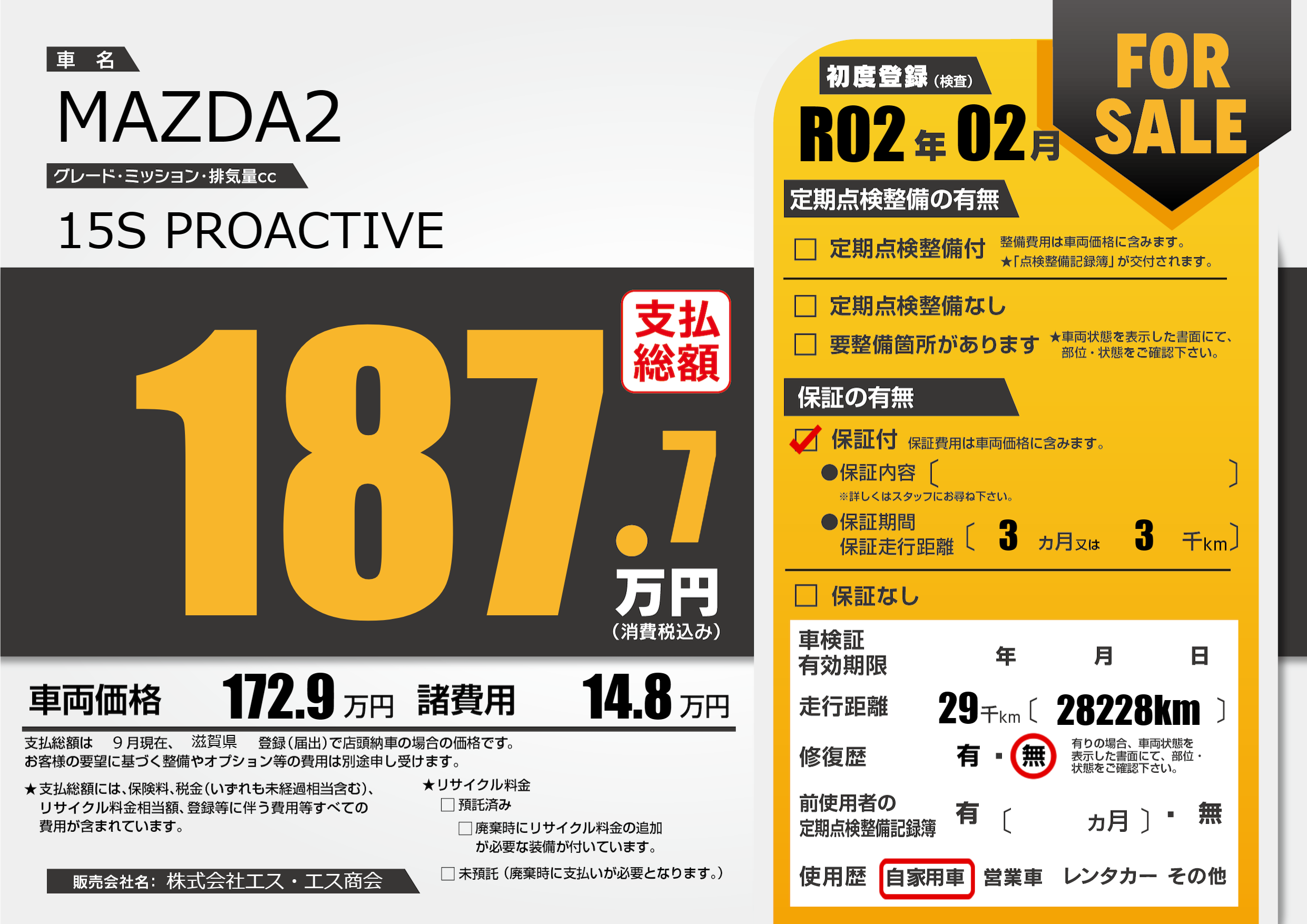 | 車名 | MAZDA2 | グレード ミッション 排気量 |