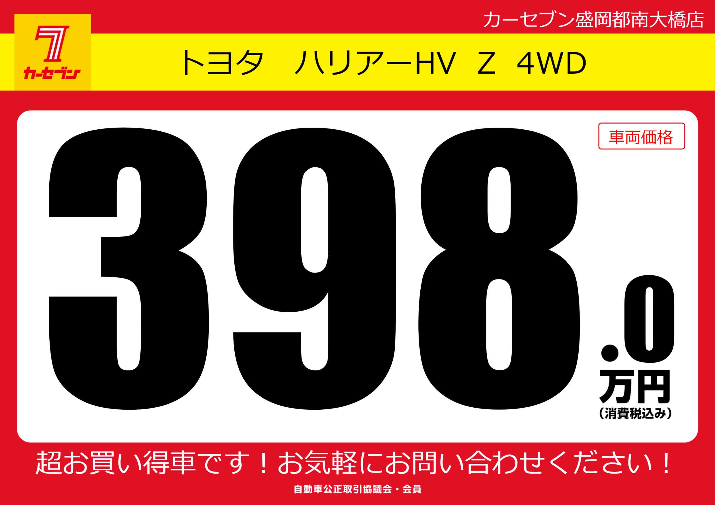 | 車名 | トヨタ ハリアーHV Z 4WD | グレード ミッション 排気量 |