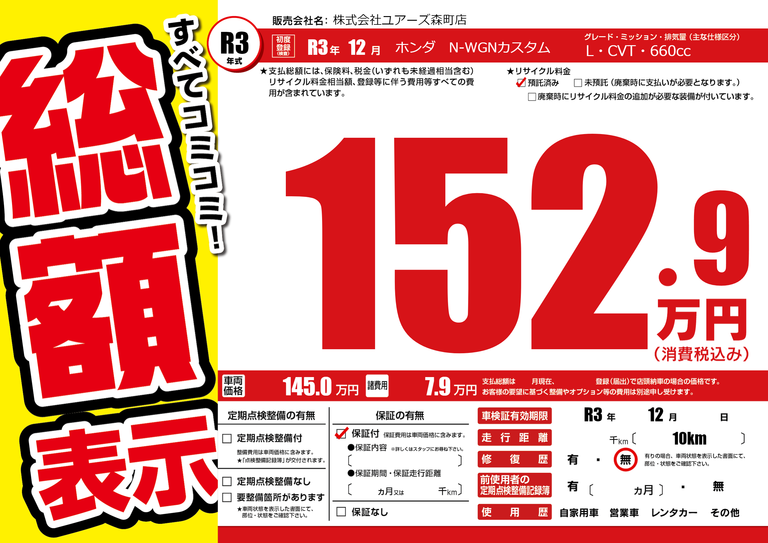 なし | 車検制限 | R3年12月---月 |