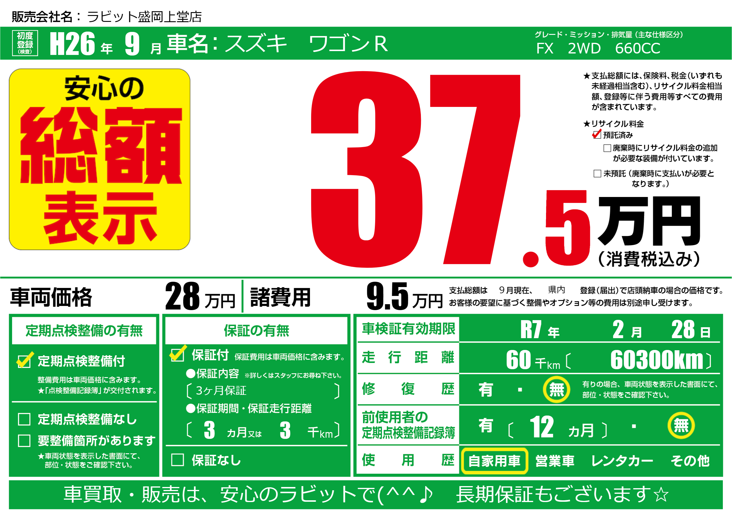 | 車名 | スズキ ワゴンR | グレード ミッション 排気量 |