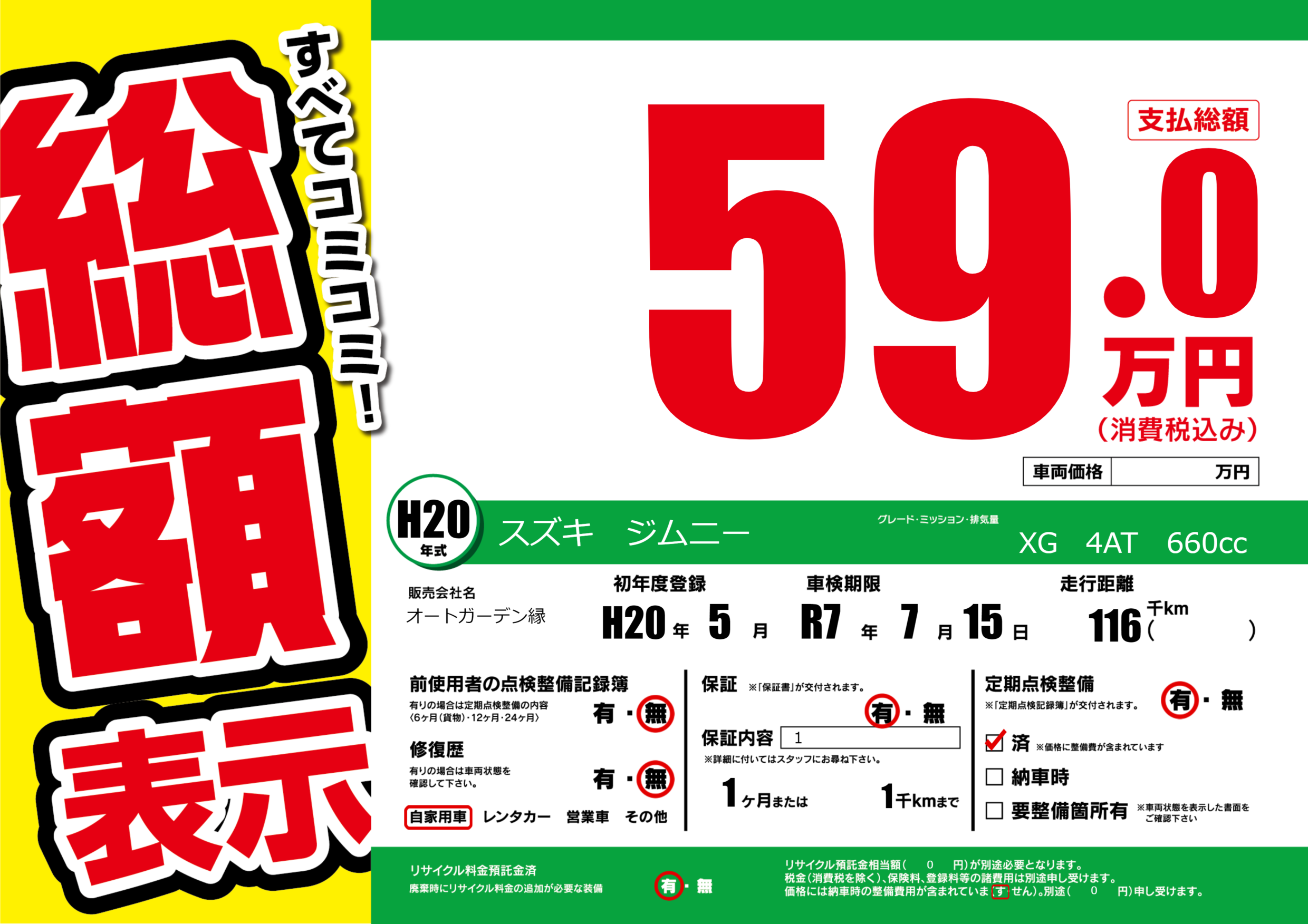 | 定期点検整備 | 定期点検整備あり 定期点検整備済み | ||