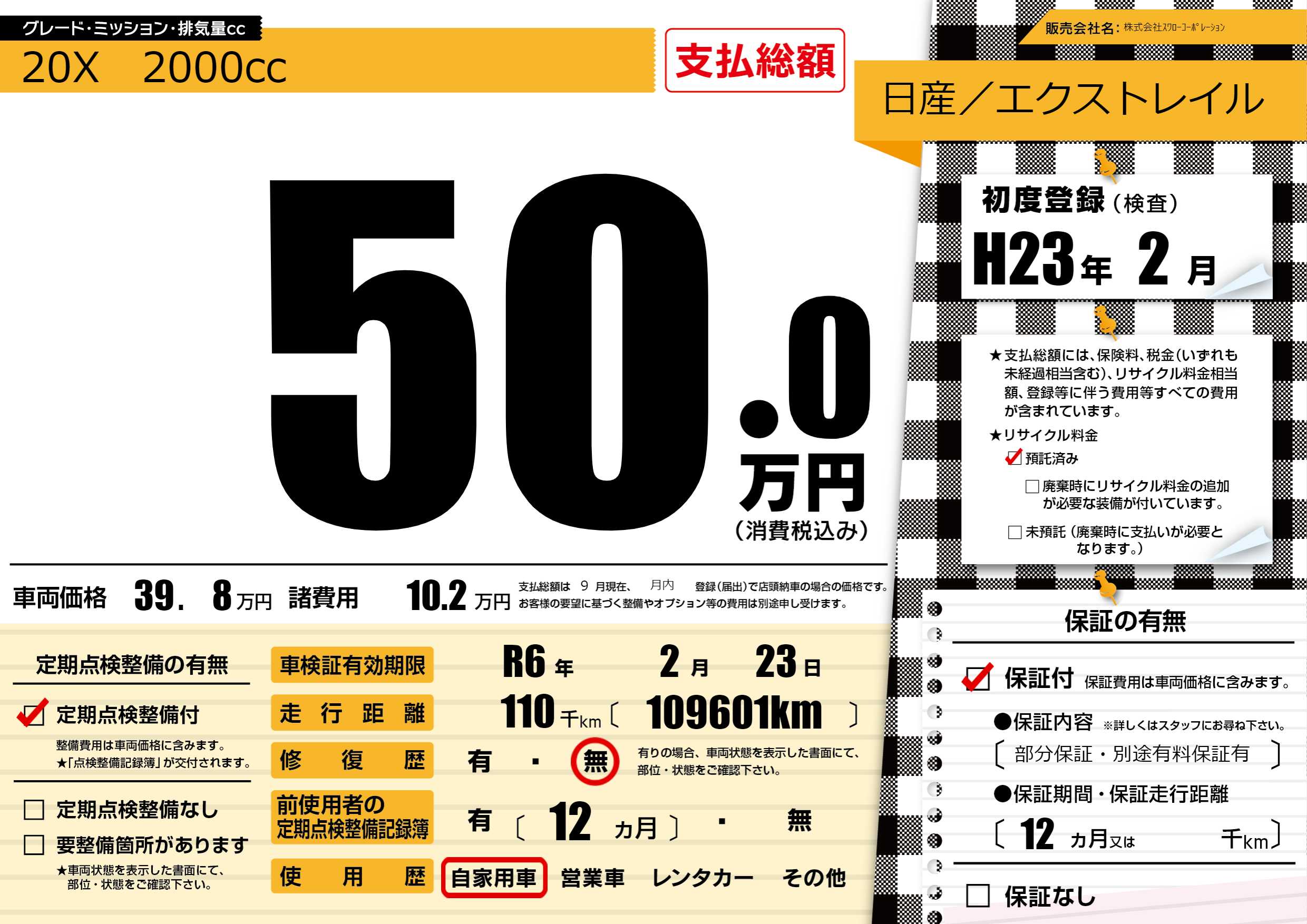 | 定期点検整備 | 定期点検整備あり | ||