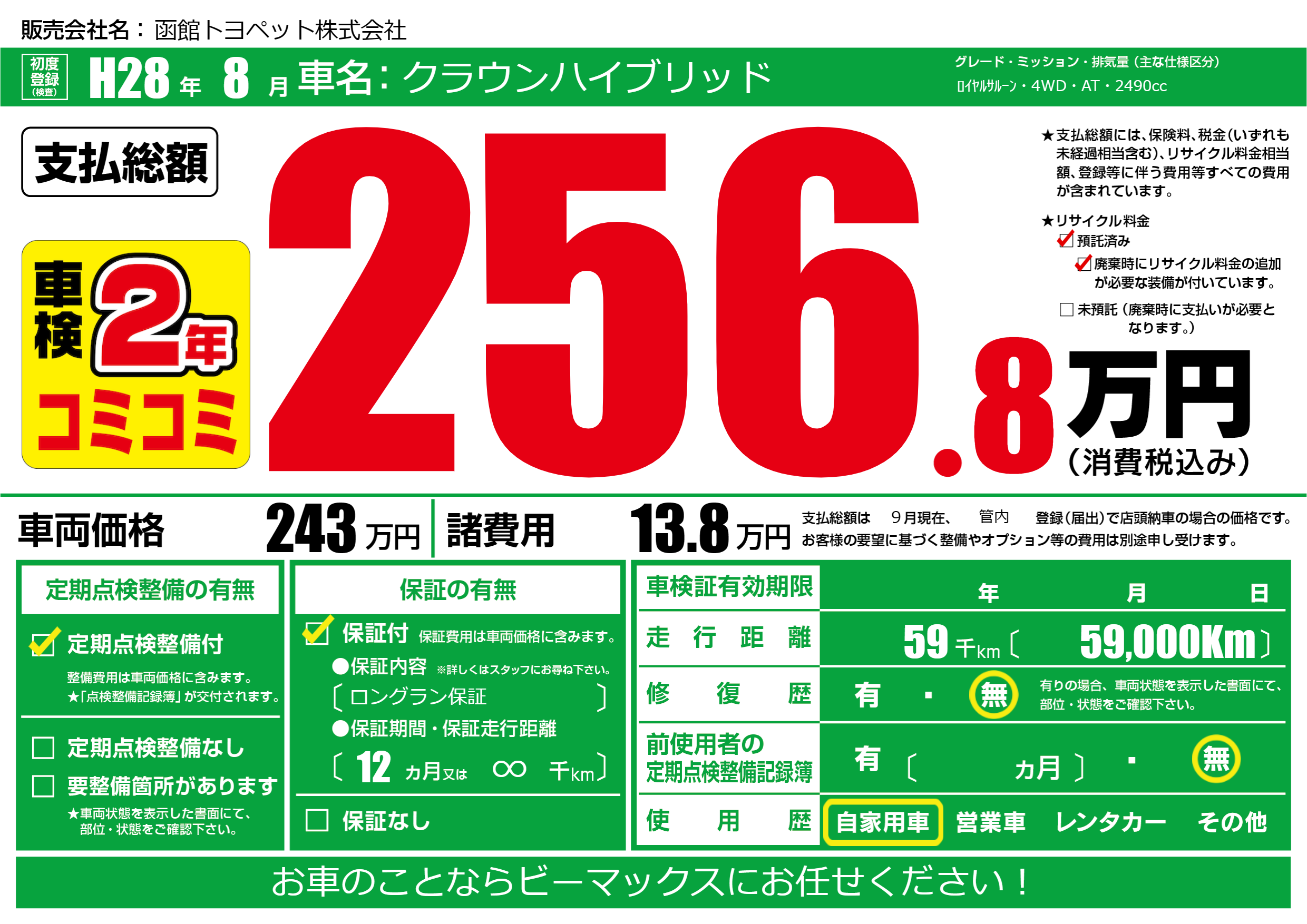 | 車名 | クラウンハイブリッド | グレード ミッション 排気量 |