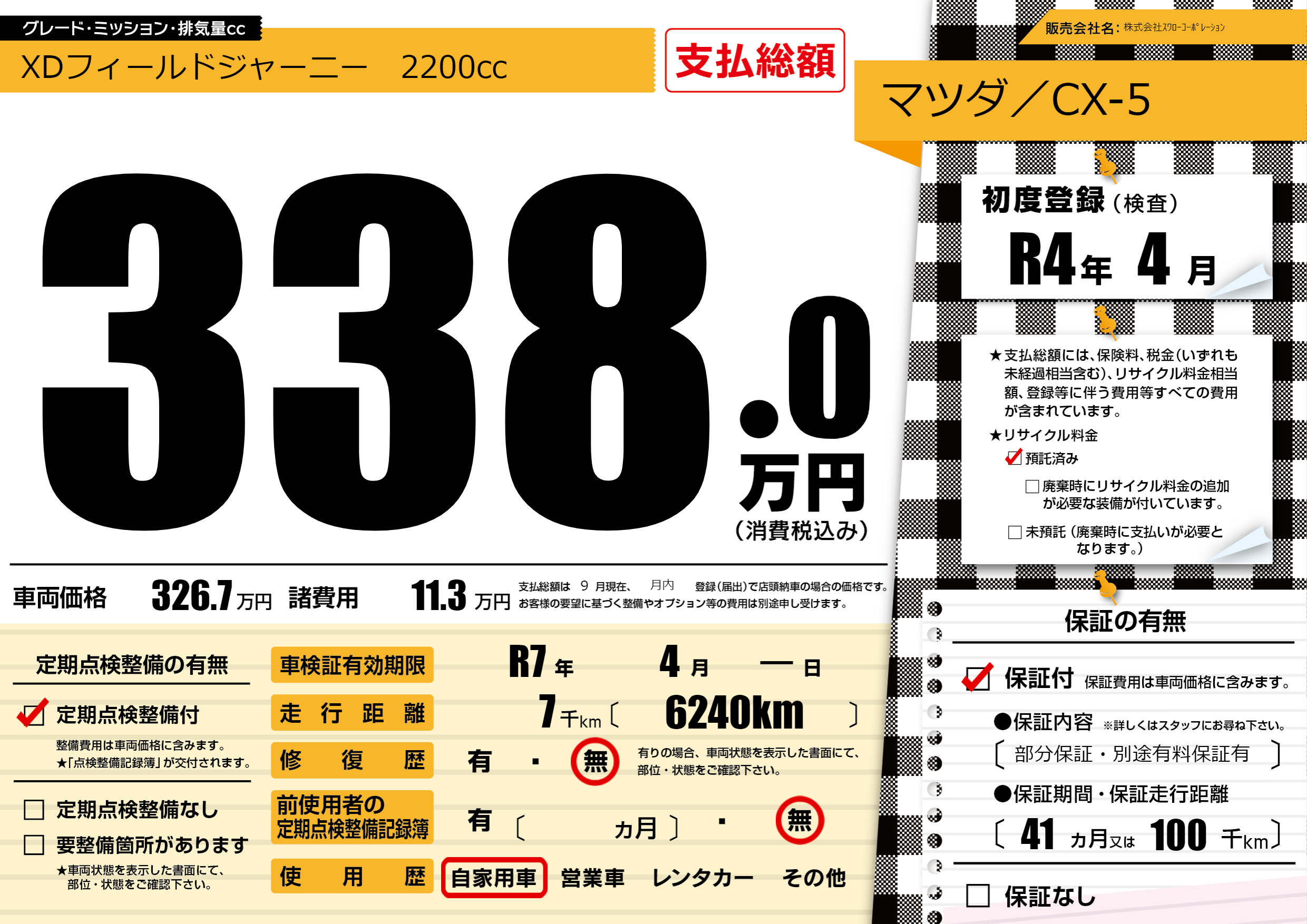 | 車名 | マツダ/CX-5 | グレード ミッション 排気量 |