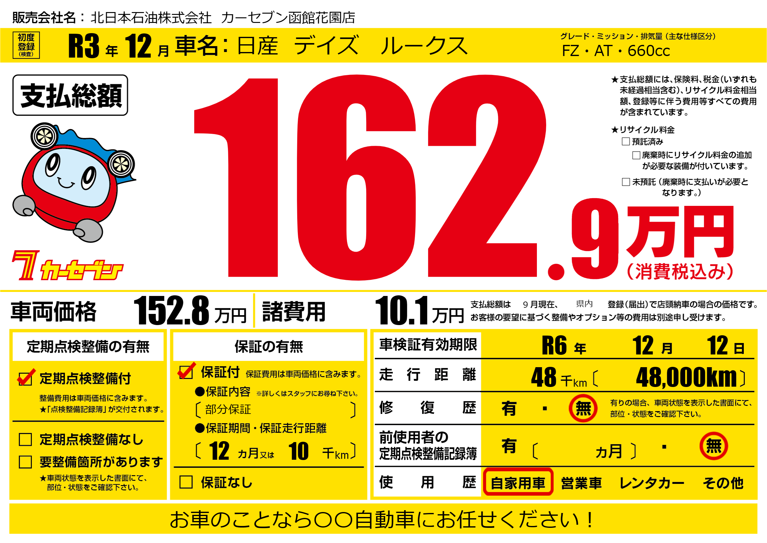| 走行キロ | 4.8万km | 初年度登録 | R3年12月 |