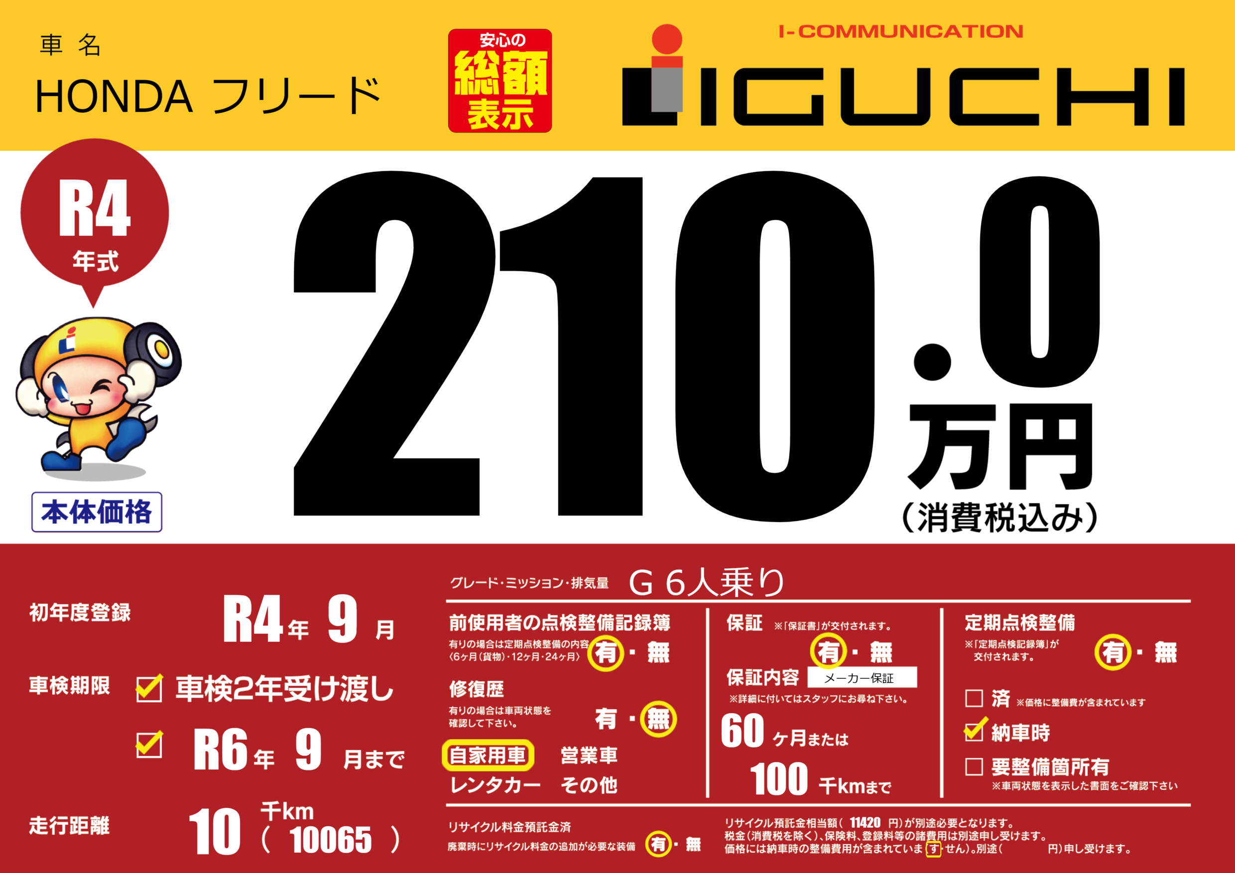 | 車検制限 | R6年 9月 - 日 | ||