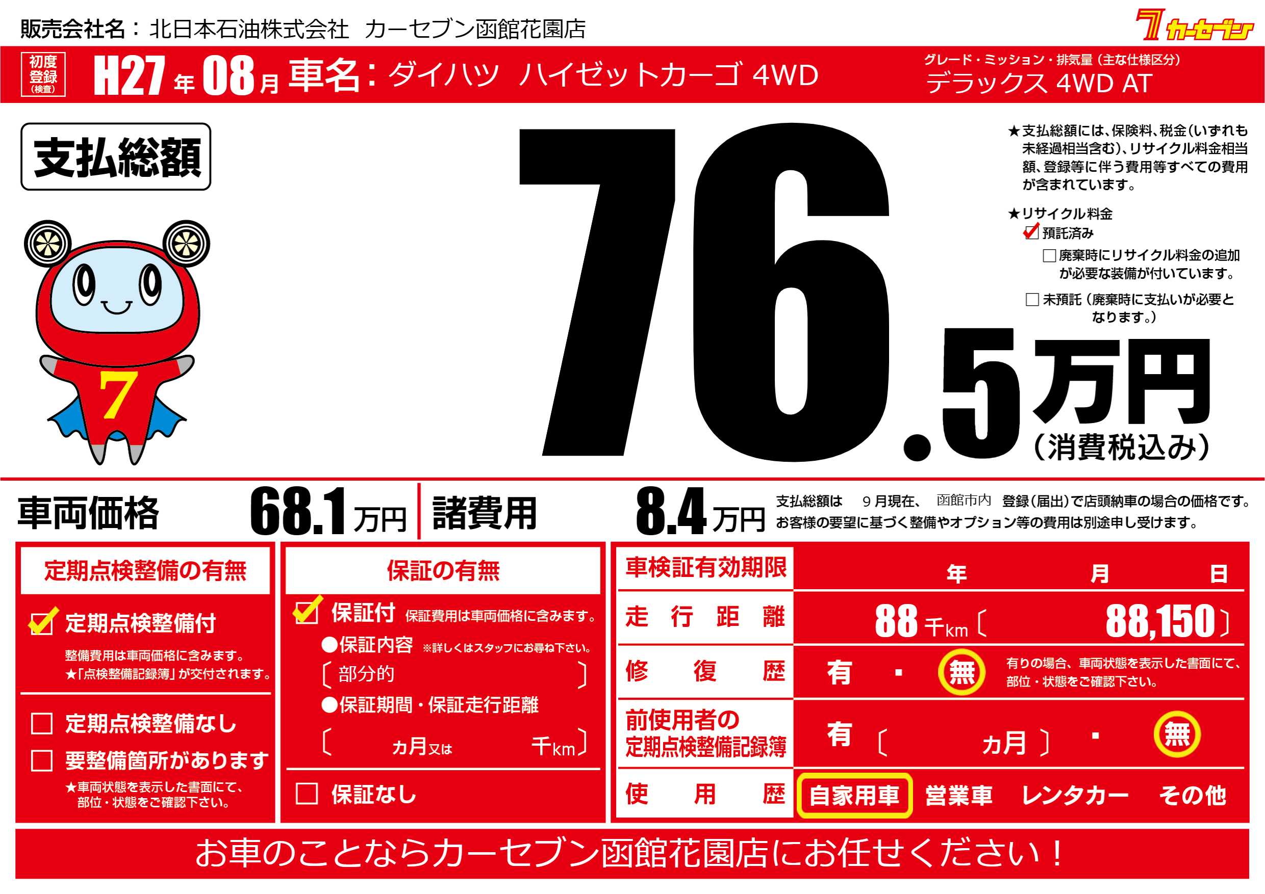 | 走行キロ | 8.8万km | ||