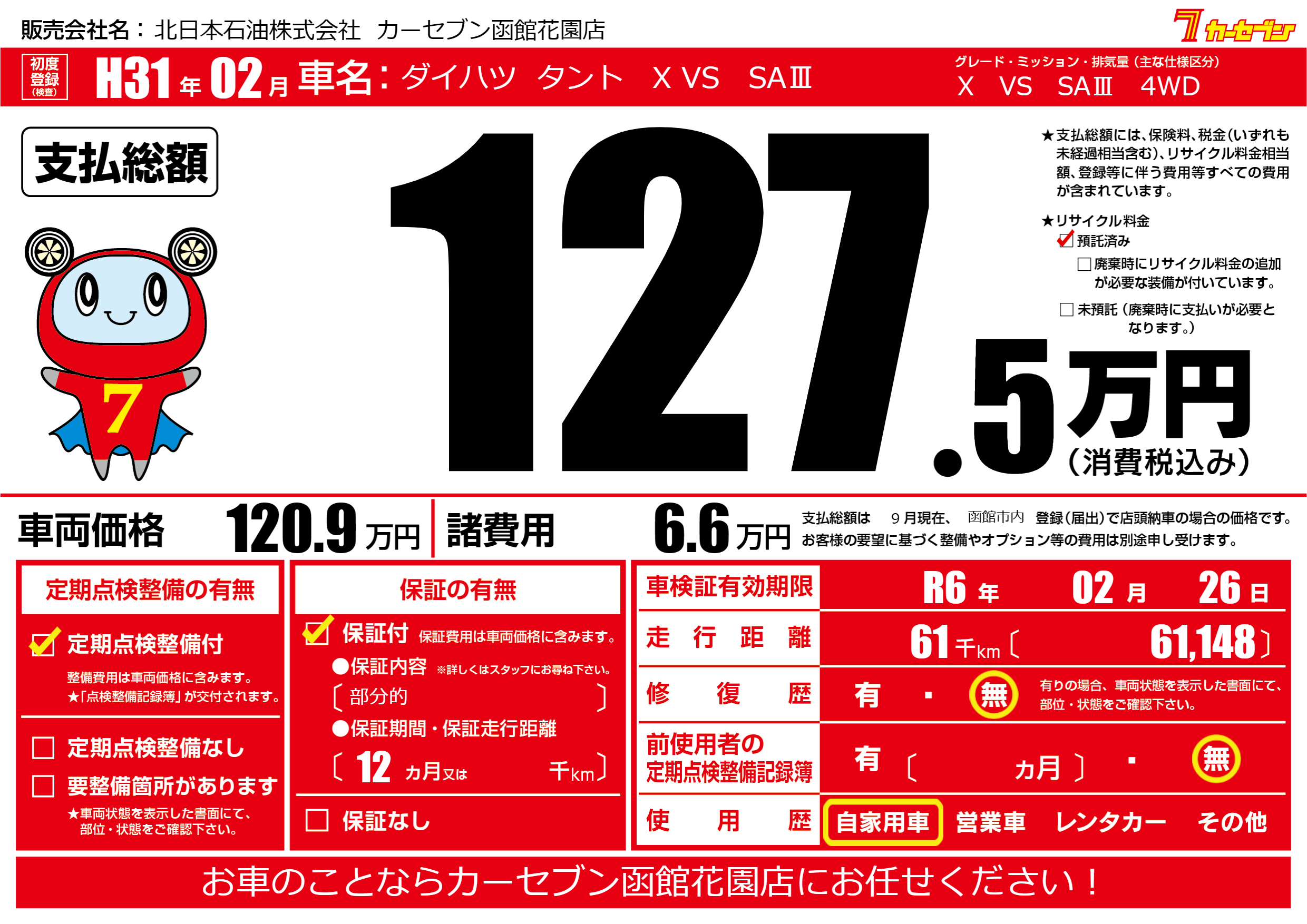| 車検制限 | R6年 02月 26日 | ||
