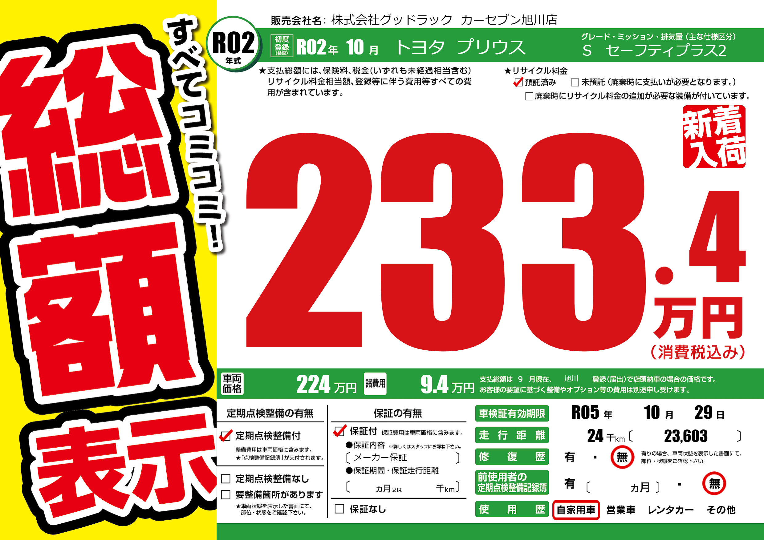 | 車名 | トヨタ プリウス | グレード ミッション 排気量 |