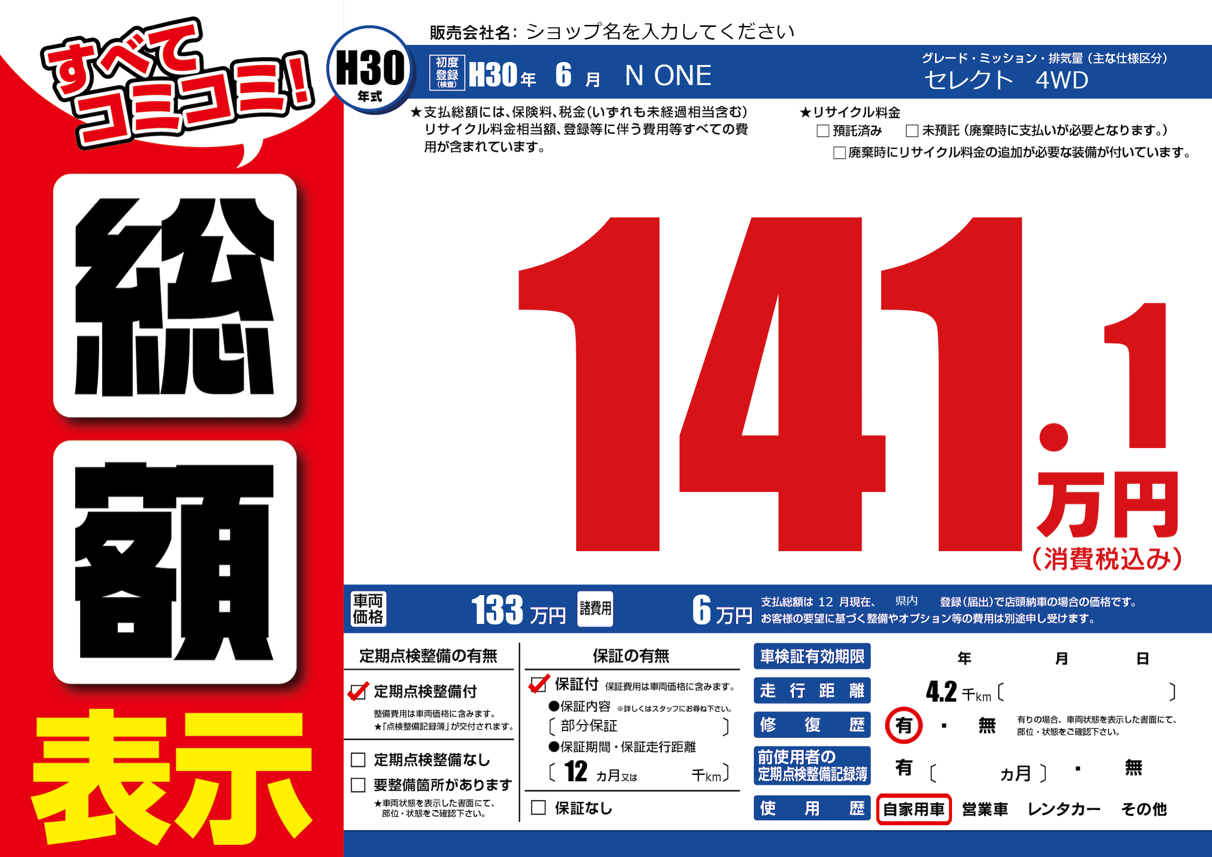 保証付き 保証内容(部分保証) 12ヶ月または()千kmまで |