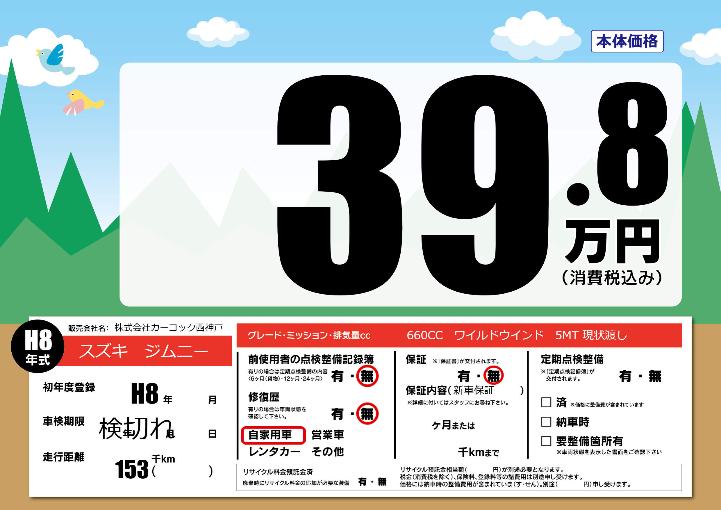 保証なし 保証内容(新車保証) ヶ月または千km |