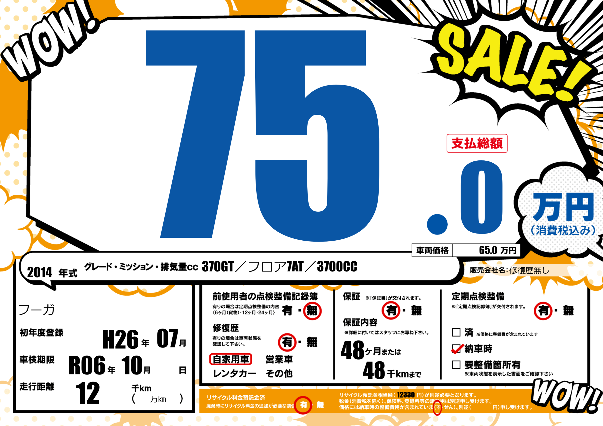 保証付き 保証内容(---) 48ヶ月または(48)千kmまで |