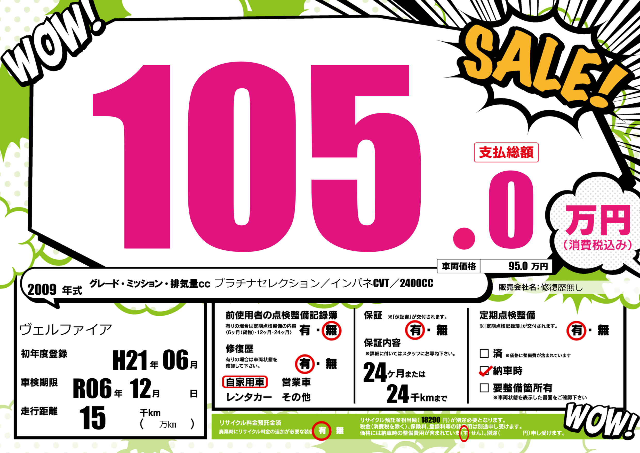 保証付き 保証内容(---) 24ヶ月または(24)千kmまで |