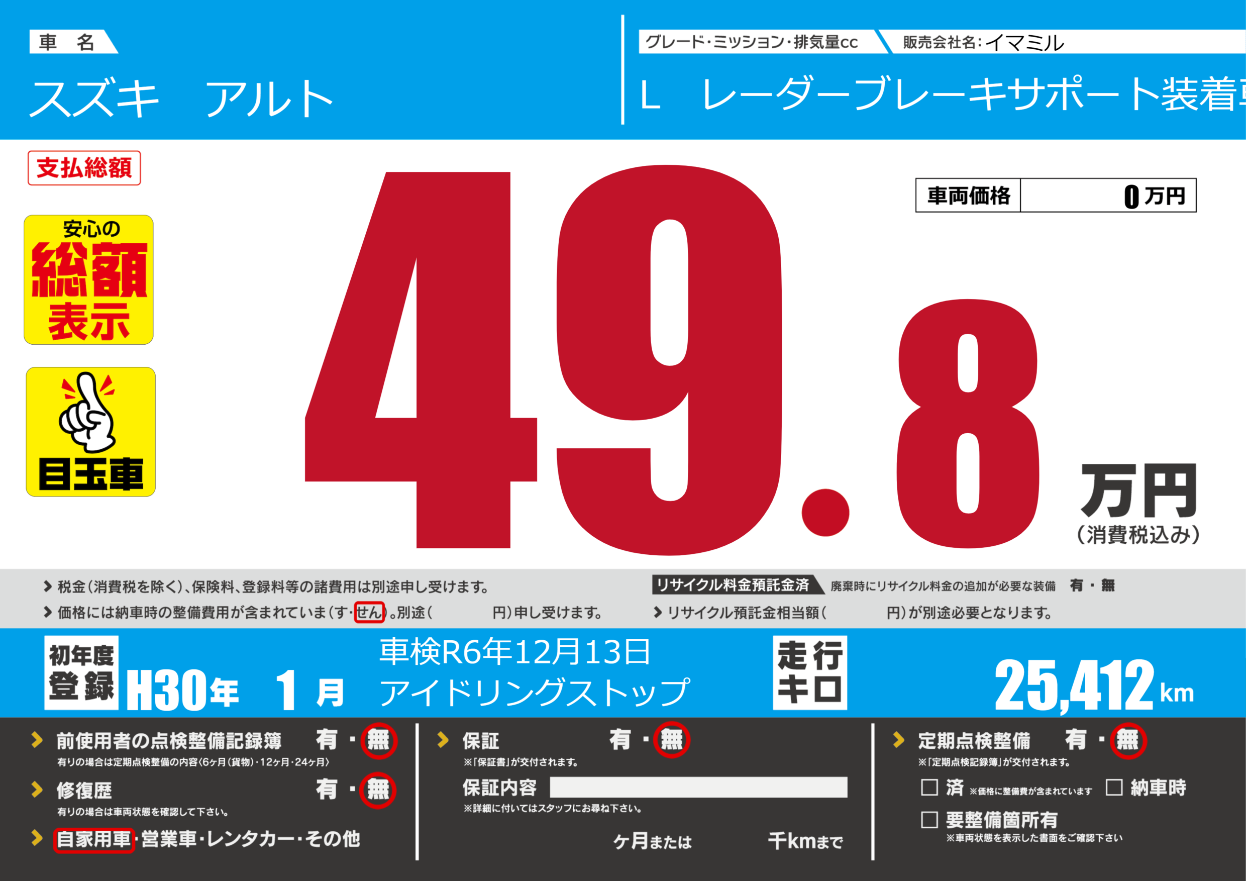 | 定期点検整備 | 定期点検整備なし | ||