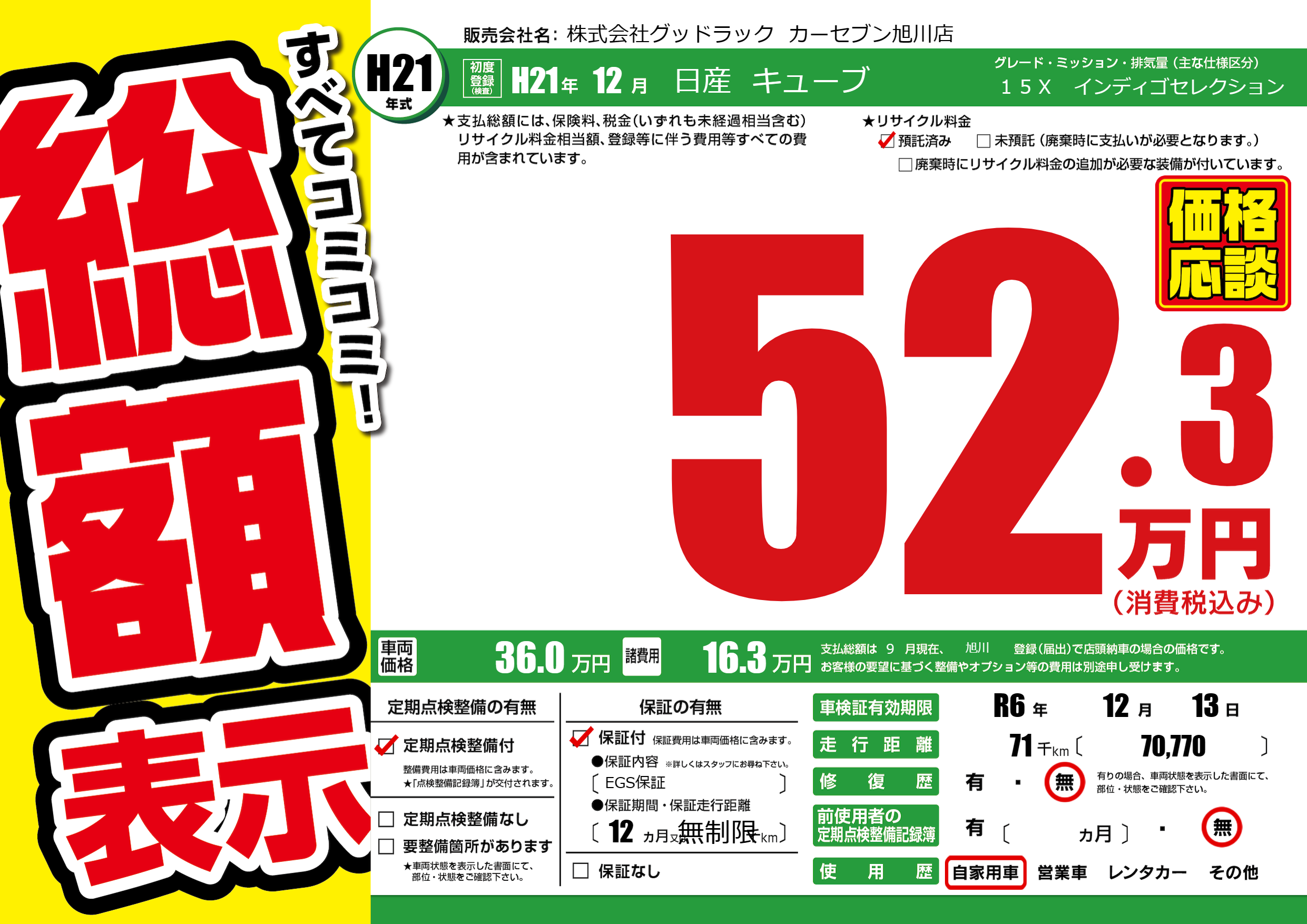| 車検制限 | R6年 12月 13日 | ||