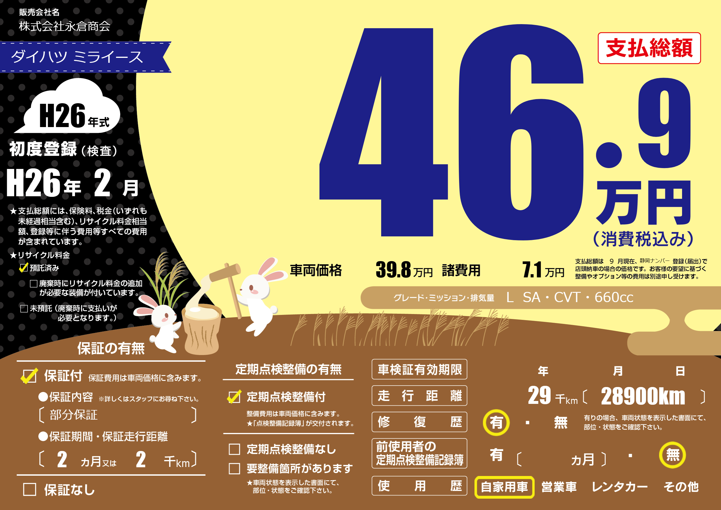 | 走行キロ | 2.9万km | 初年度登録 | H26年2月 |
