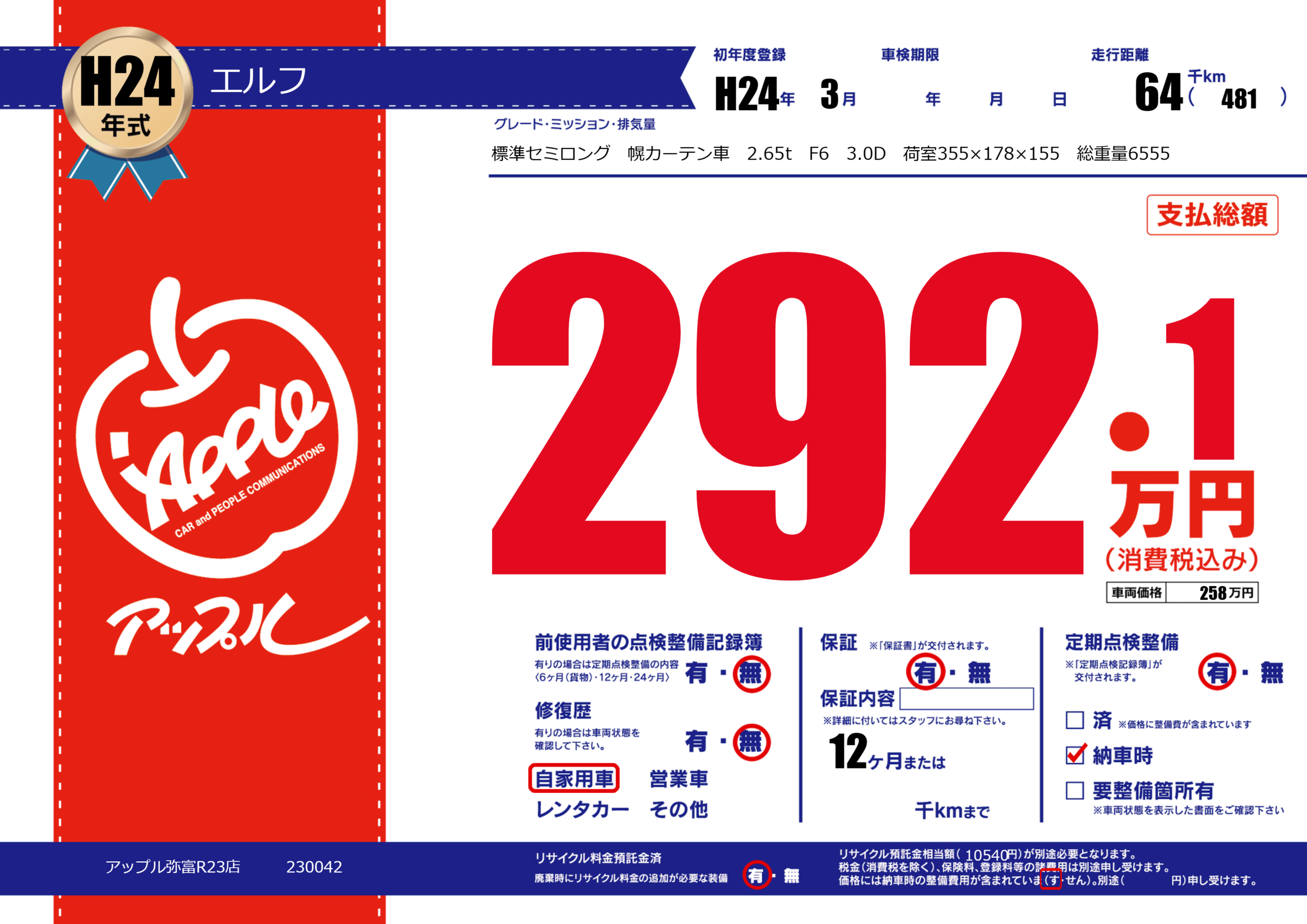 | 車名 | エルフ | グレード ミッション 排気量 |
