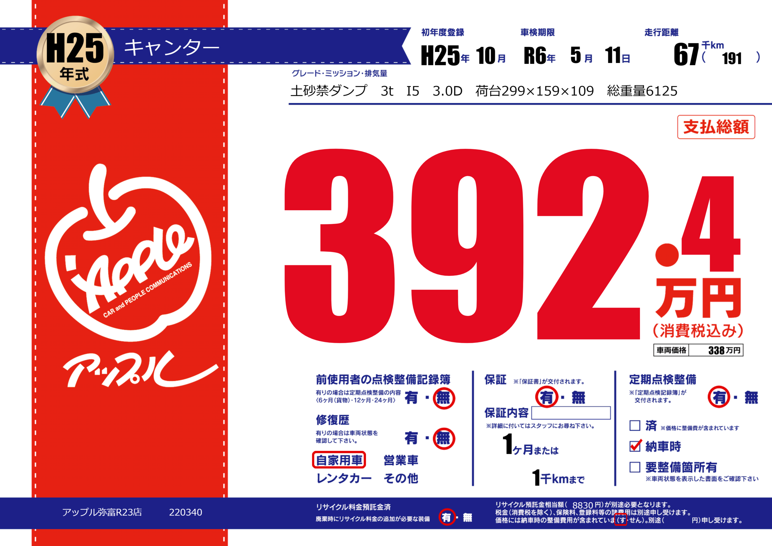 | 車名 | キャンター | グレード ミッション 排気量 |