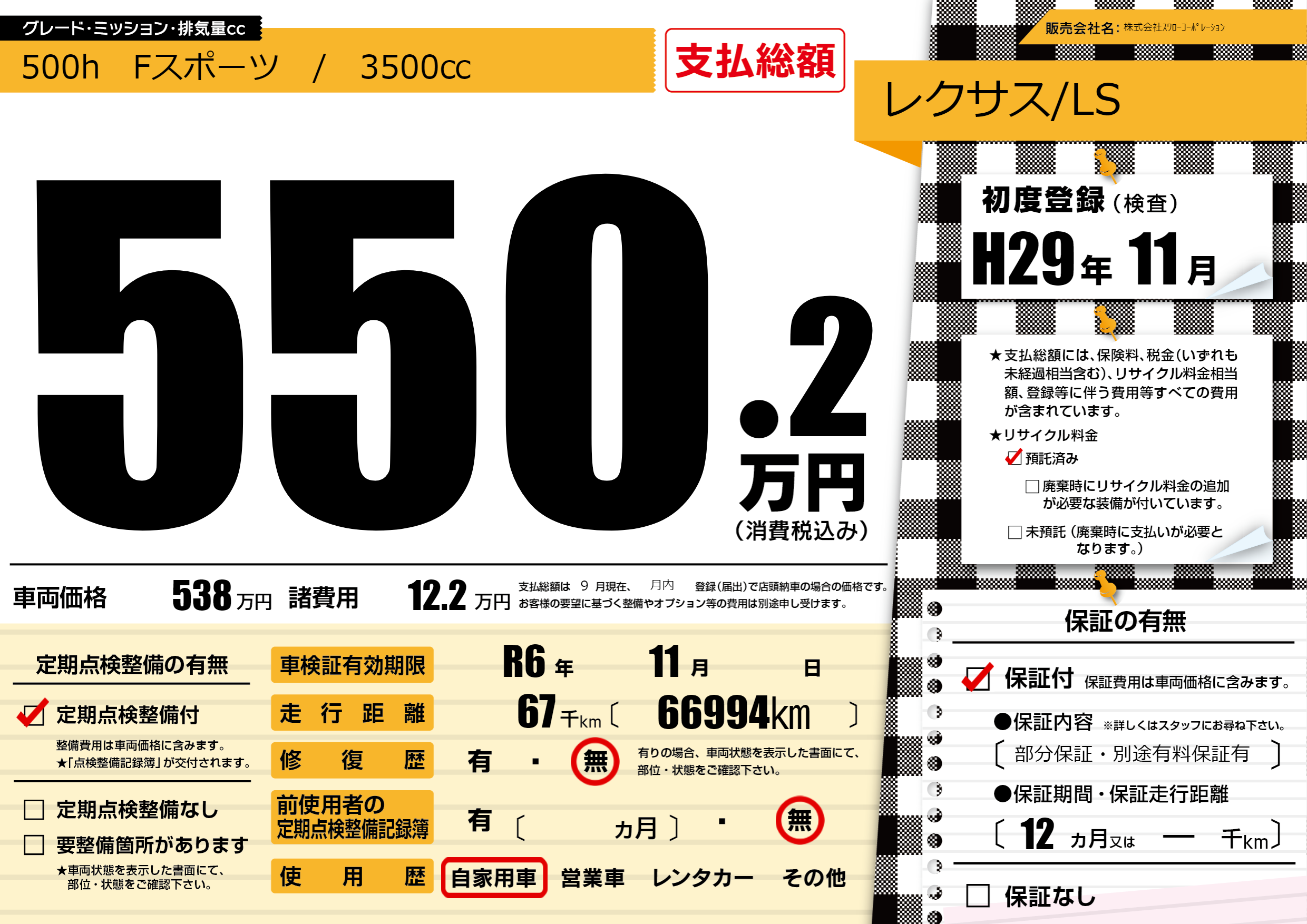 | 車名 | レクサス/LS | グレード ミッション 排気量 |