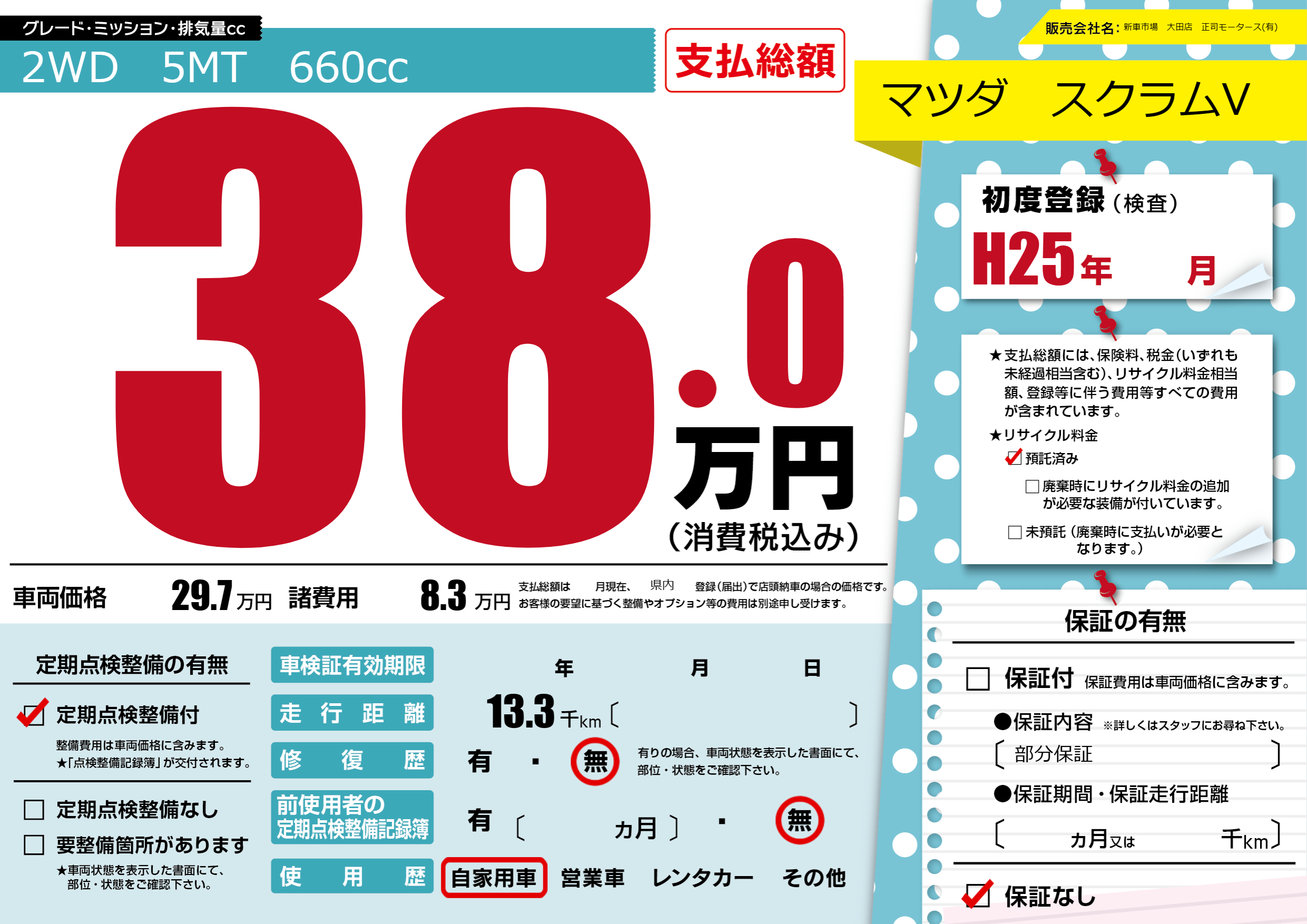 新車市場 大田店 正司モータース(有)の展示車をすべて見る
