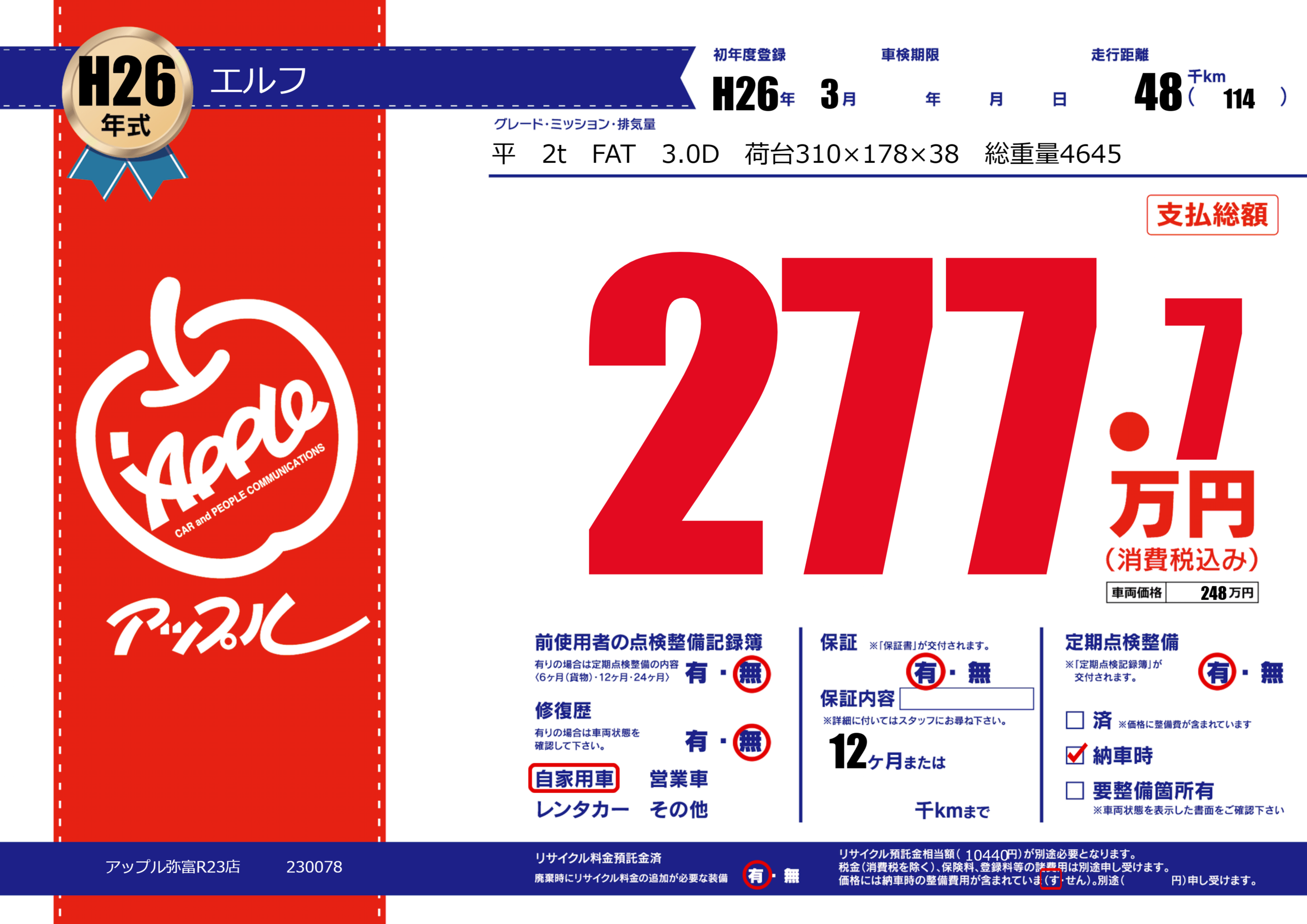 | 走行キロ | 4.8万km | ||
