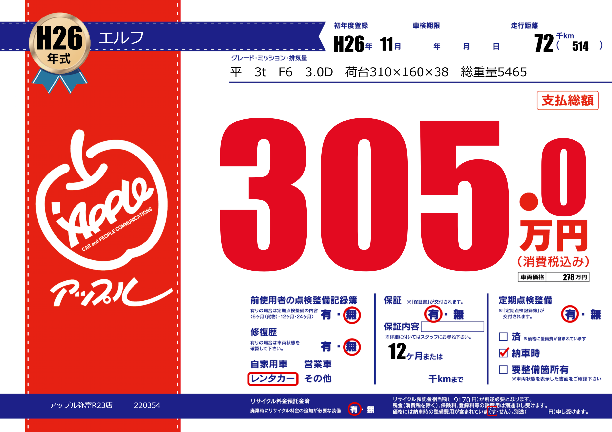 | 車名 | エルフ | グレード ミッション 排気量 |