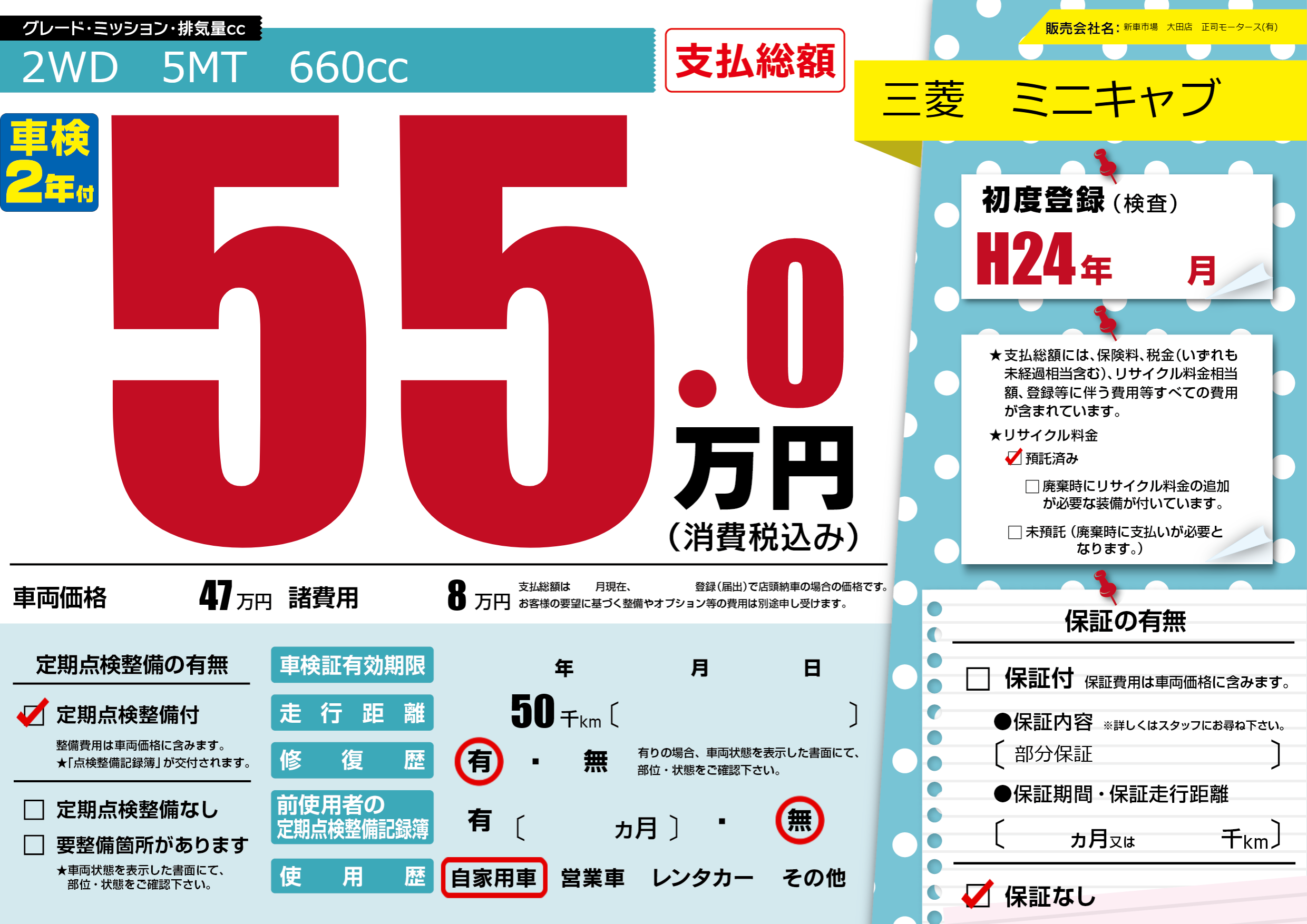 | 車名 | 三菱 ミニキャブ | グレード ミッション 排気量 |