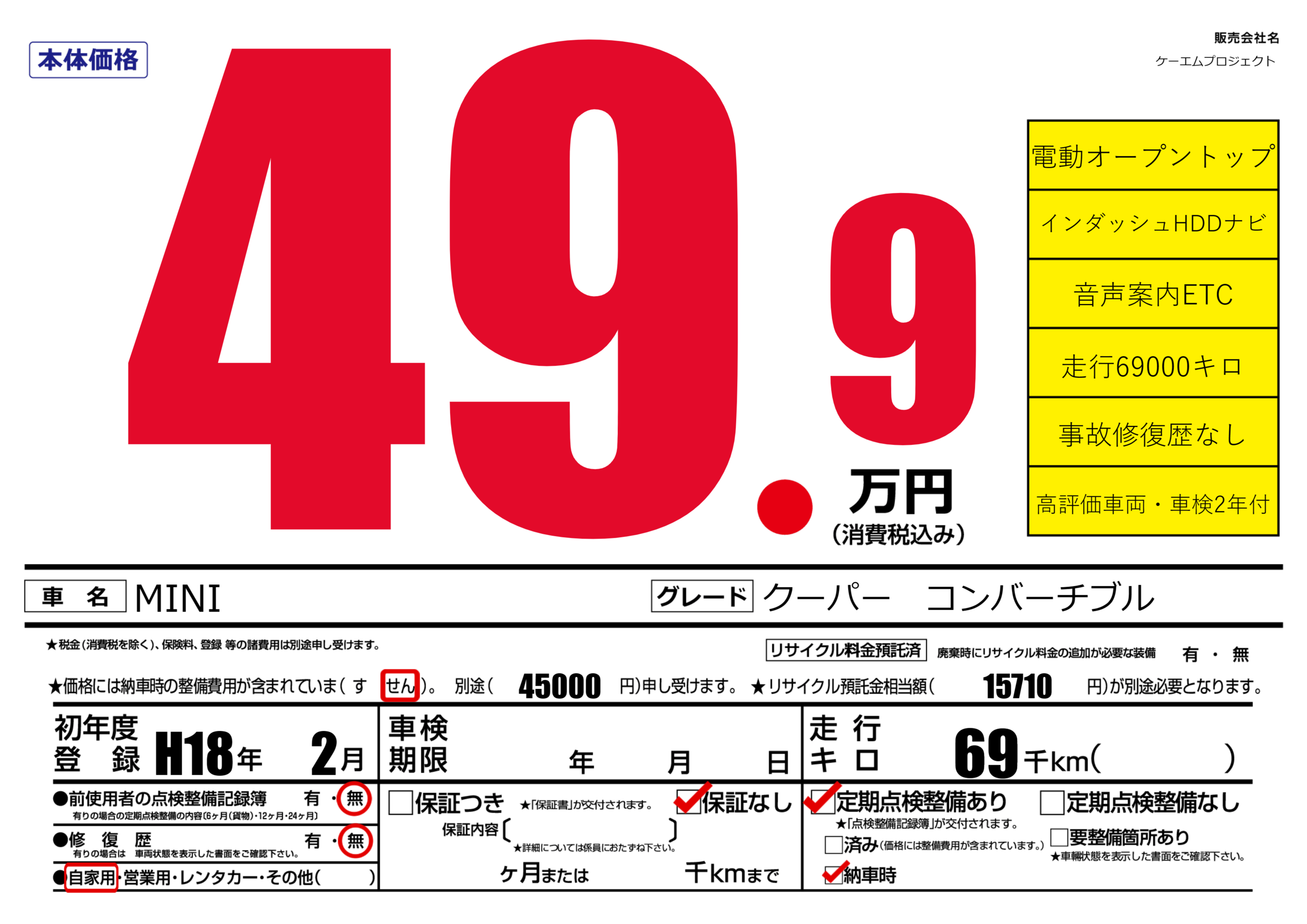 | 初年度登録 | H18年2月 | ||