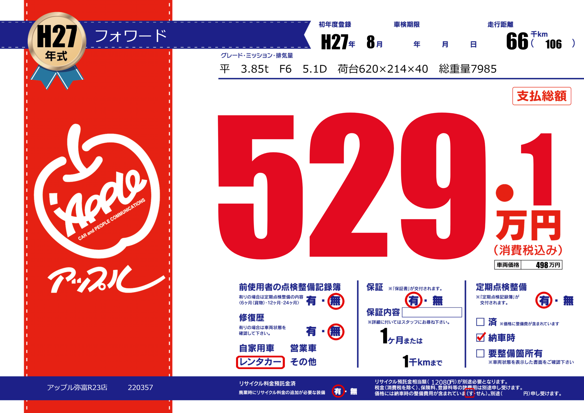 | 車名 | フォワード | グレード ミッション 排気量 |