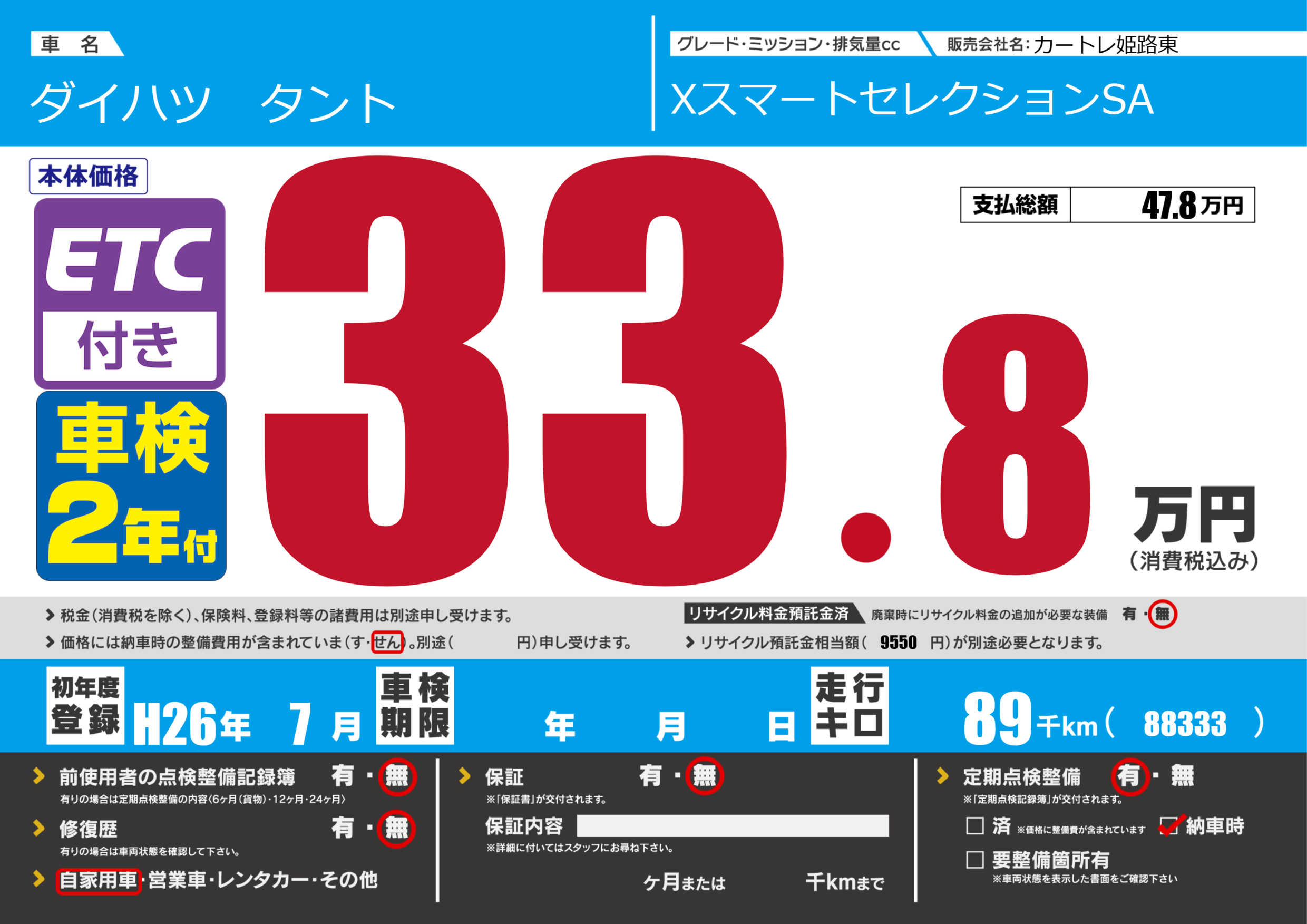 | 走行キロ | 8.9万km | ||