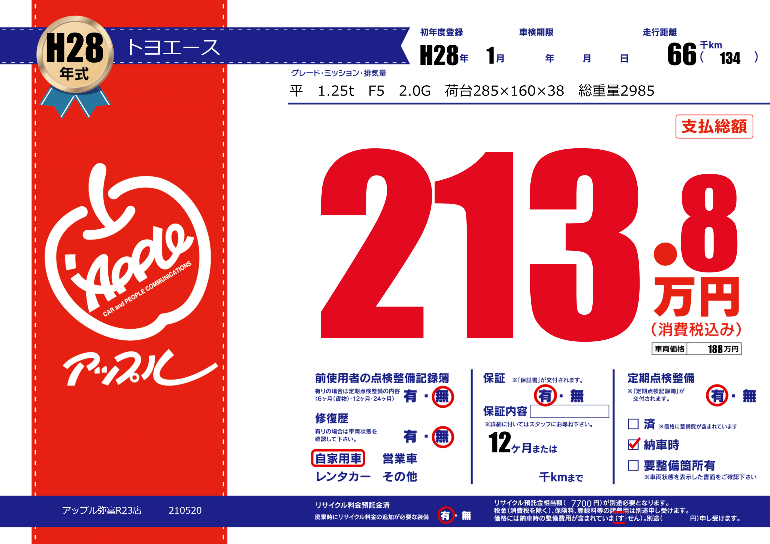 | 初年度登録 | H28年1月 | ||