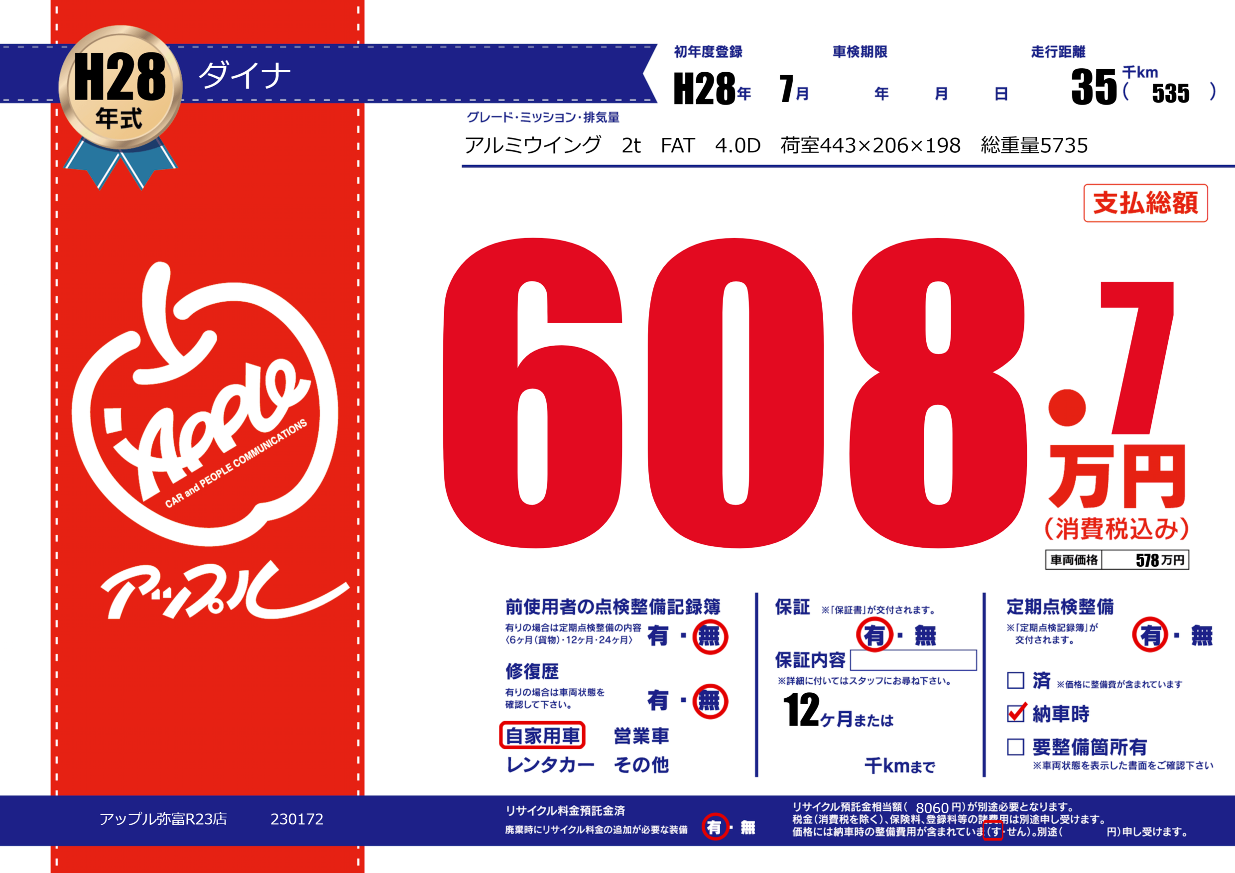 | 車名 | ダイナ | グレード ミッション 排気量 |